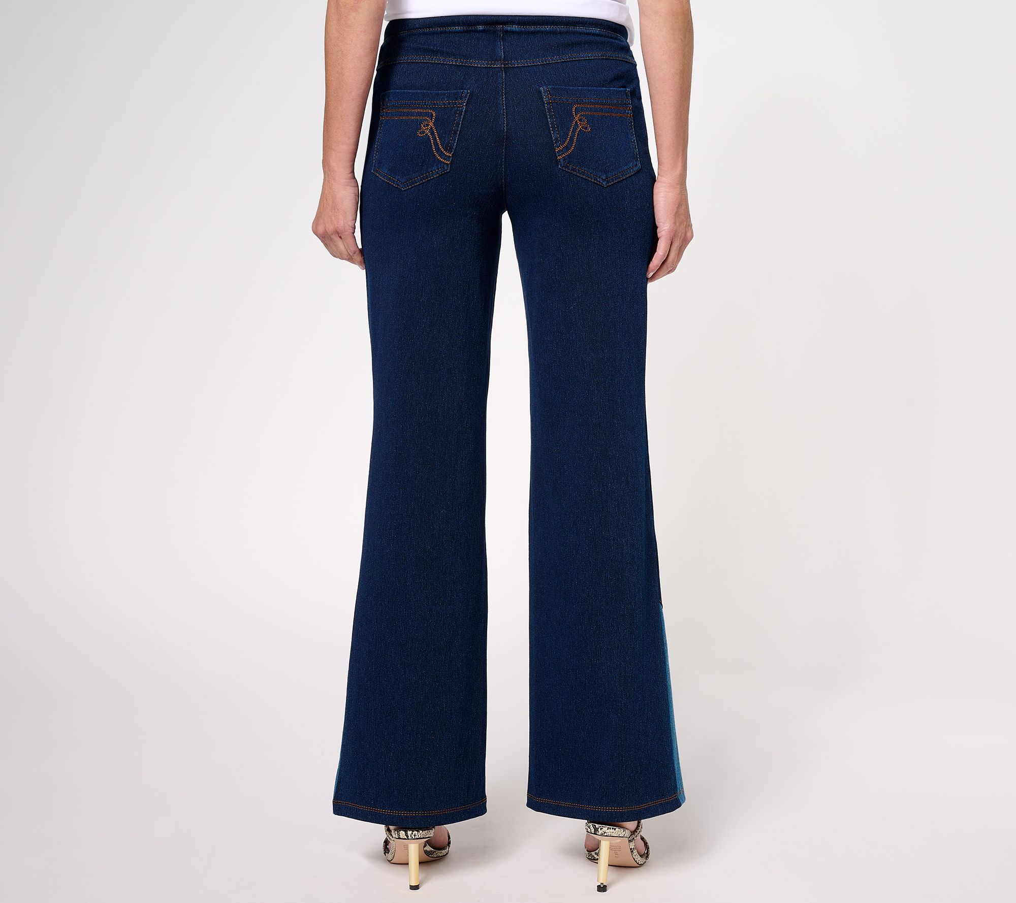 • Leg Shape: wide leg; widens fashionably from thigh to leg opening