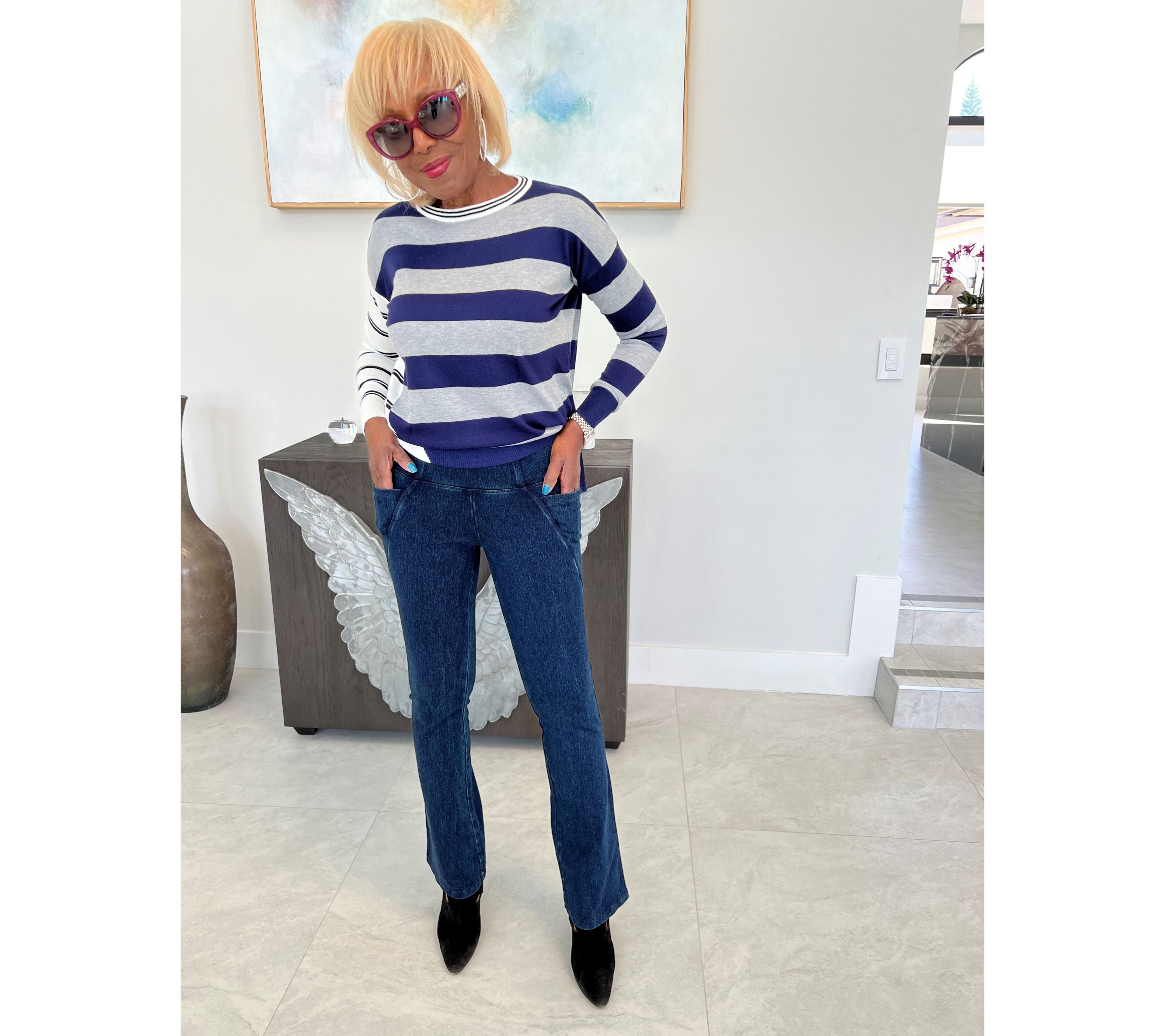 You haven't lost your edge; it was just concealed in a closetful of skinnies. But (hooray!), these Prime StretchTM denim pants are here to put the flair back in your pair, with a subtly flared leg and room-commanding fit. Style them with a striking stiletto and sweater set or your favorite concert tee and rocker-chic boots (studs optional). From Women with Control®.
