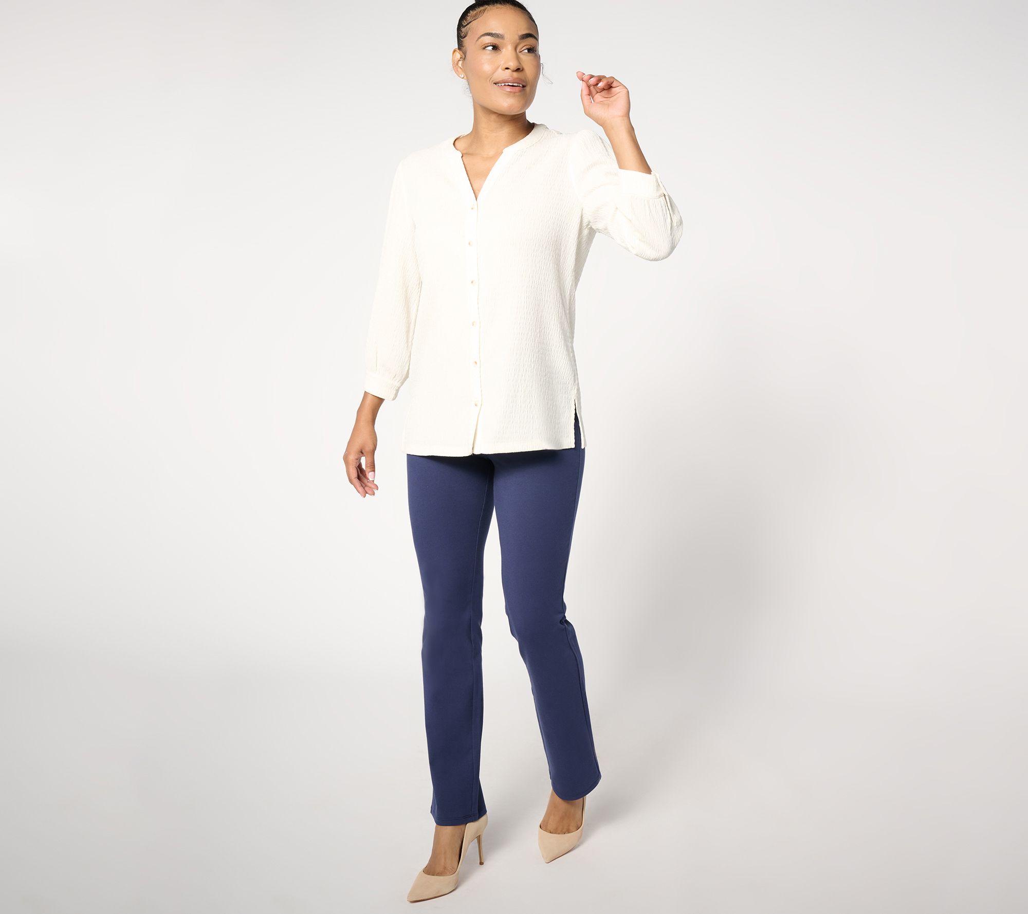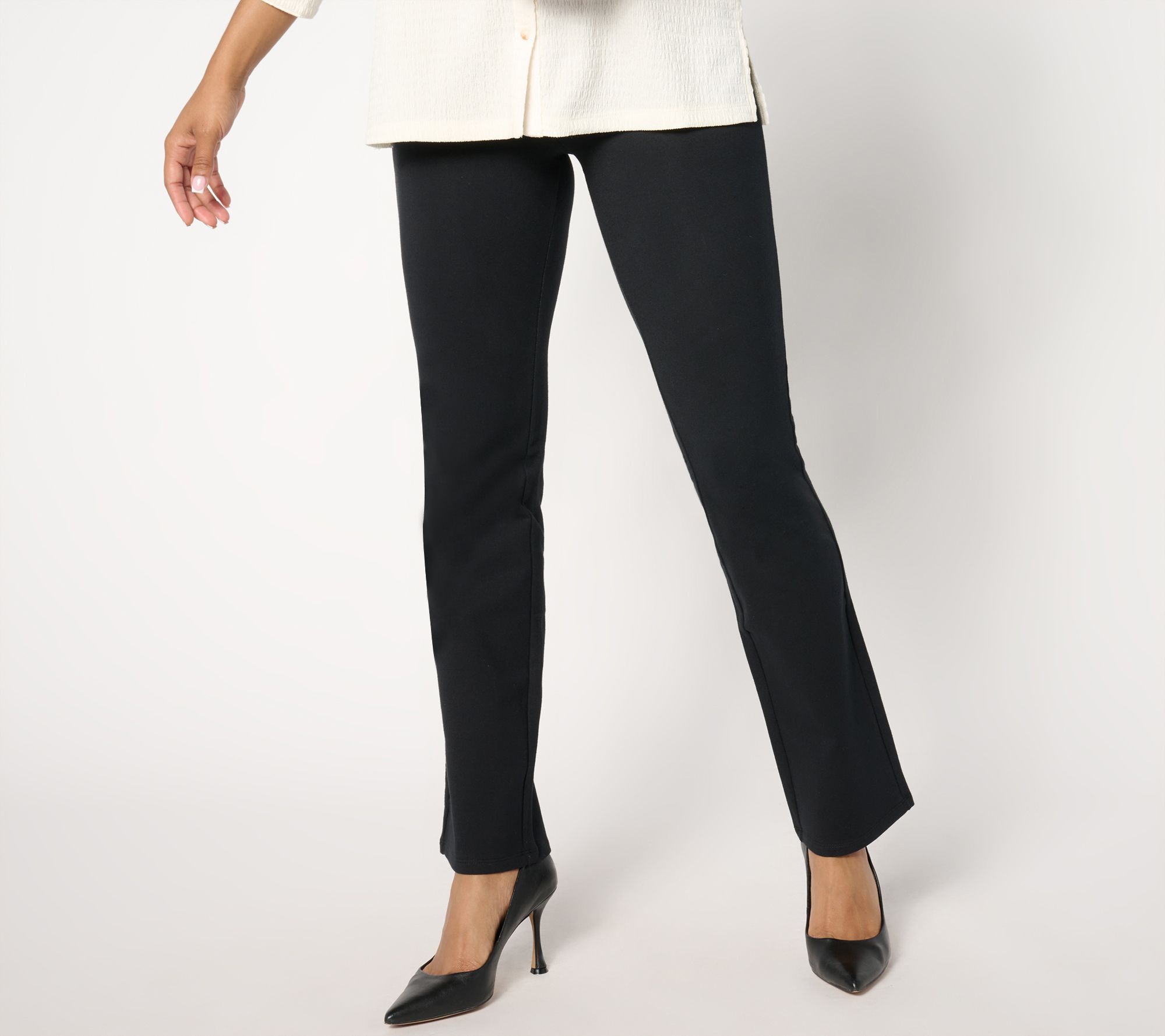 Saved by the... baby bell! These fitted work-to-weekend pants find the flattering middle ground between trendy flares and classic slim-leg styles. Plus, the everyday winner includes the beloved Women with Control® Tummy Control with Blu-Tec Control SystemTM. So now, so confident, so indispensable. From Women With Control®.
