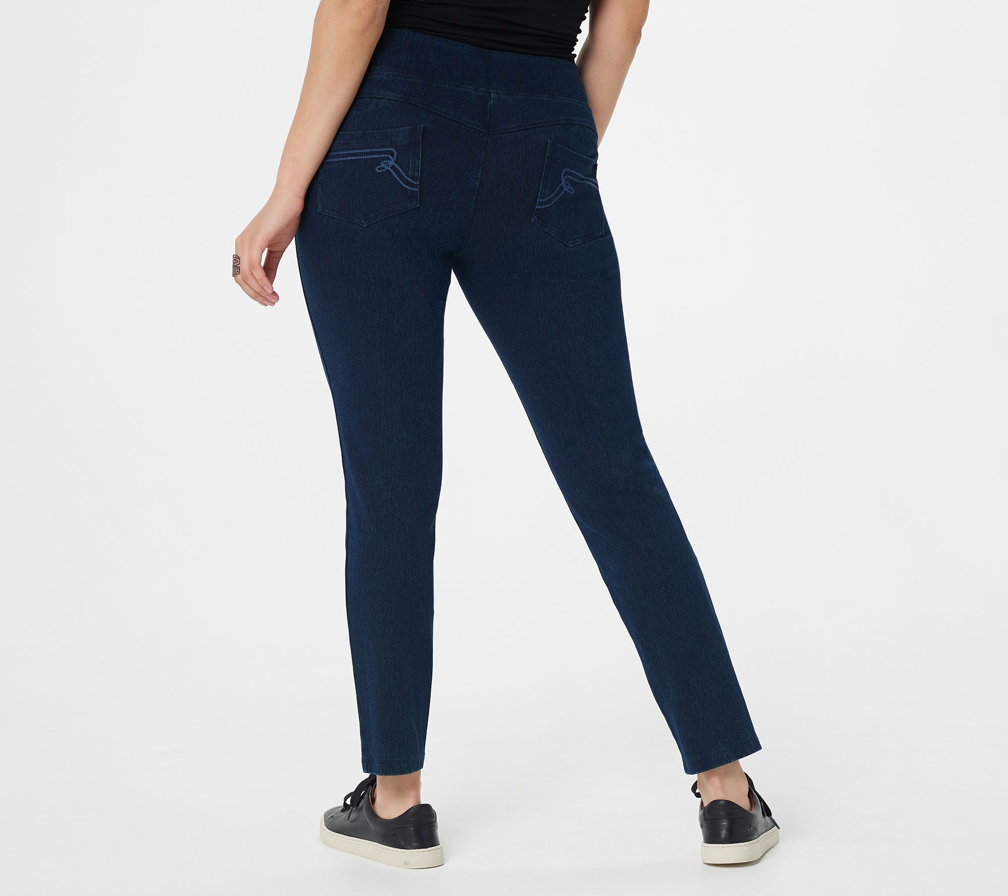 • Features: pull on, waist seaming, back seaming details, two embroidered back pockets, Tummy Control