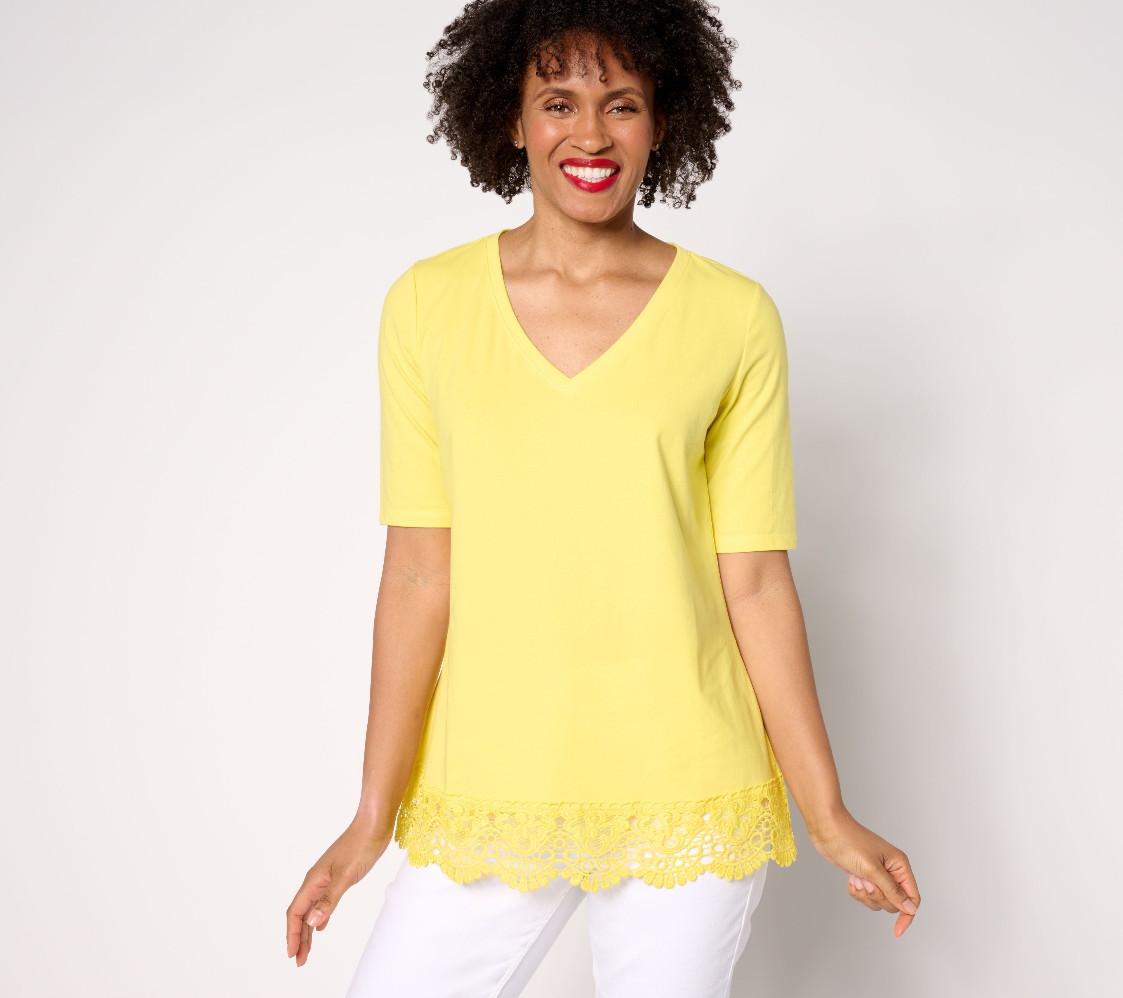 "As Is" Women with Control Short Sleeve Top with Lace Hem