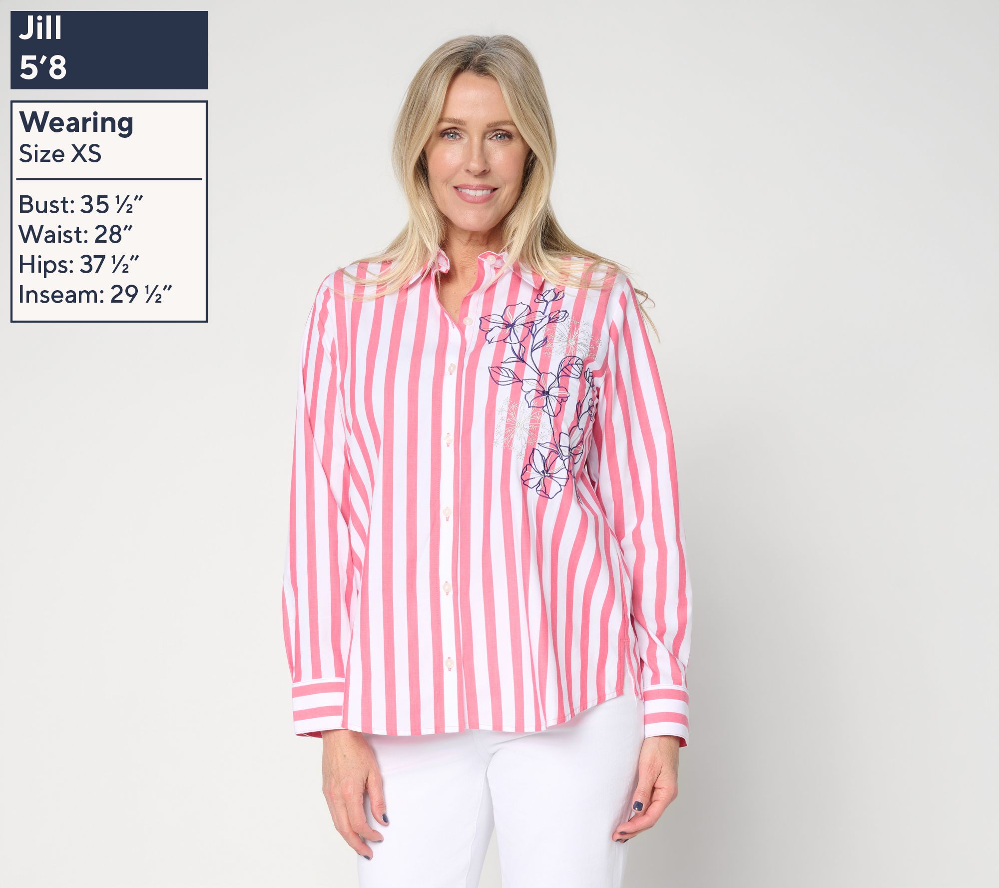 Show your stripes! Whether you're meeting friends for coffee or heading to the office, this pretty embroidered top adds personality to everyday outfits. The never-tight silhouette, crafted with a hint of stretch, flatters while helping to keep you comfortable from morning to night. From Women with Control®.