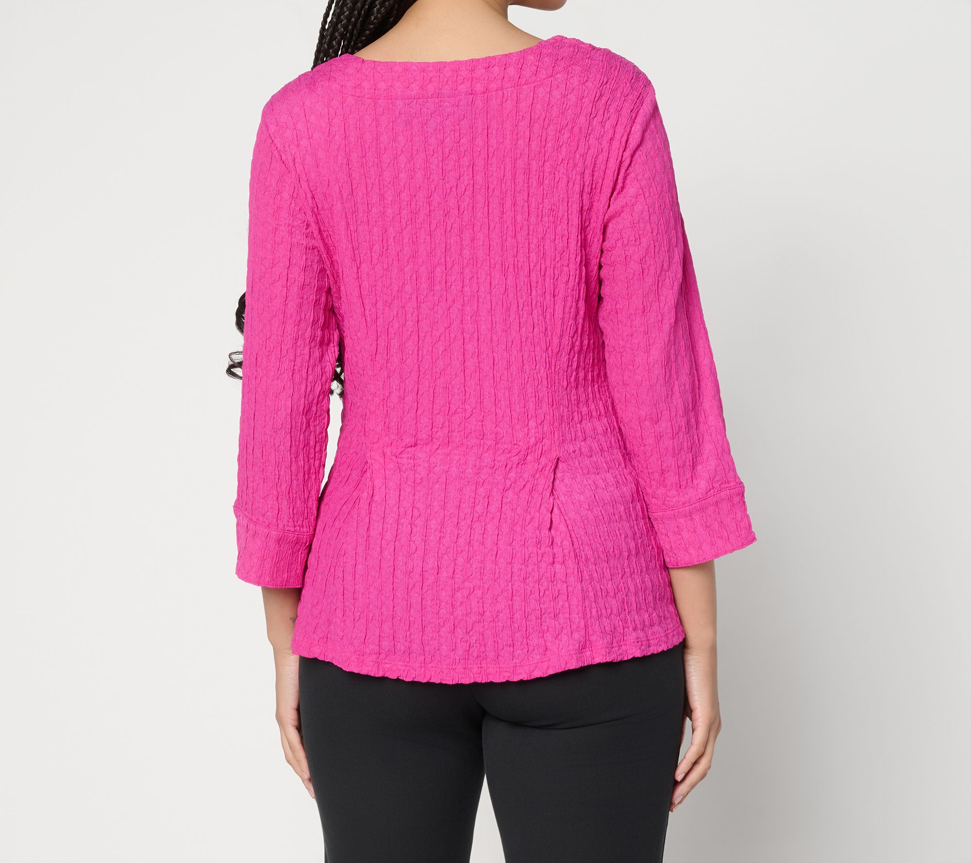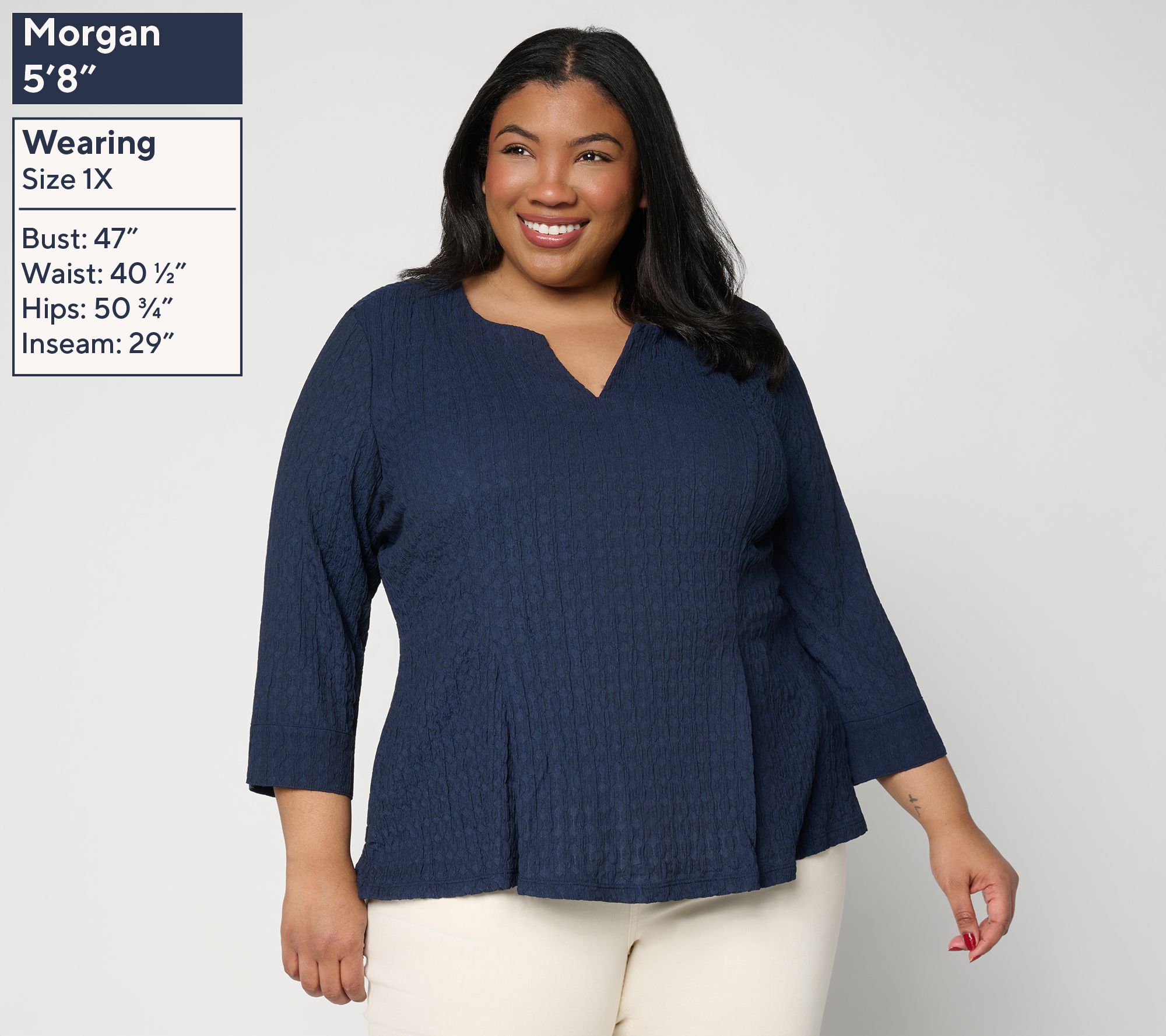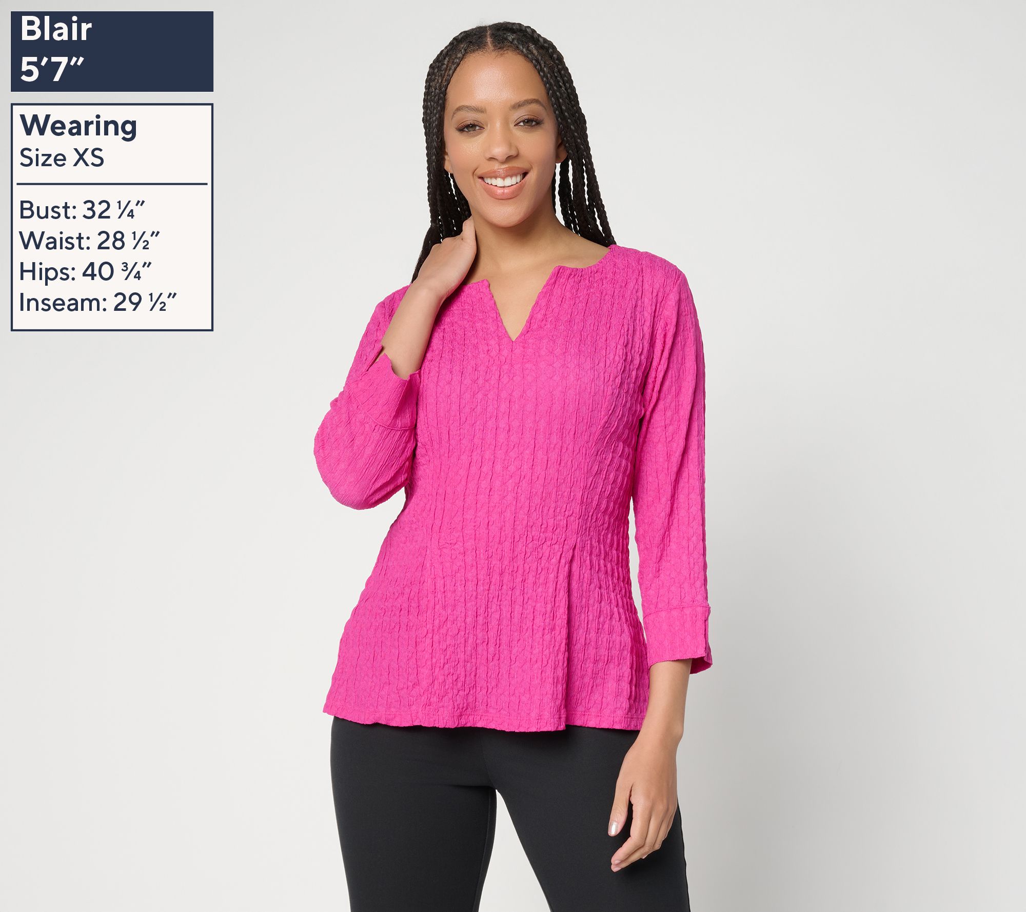 Office days, weekends gatherings, and dinner dates feel more sophisticated when you reach for this textured knit top -- designed with a flattering Y-shaped neckline and graceful silhouette that shifts easily from casual days to dressed-up moments. From Women with Control®.