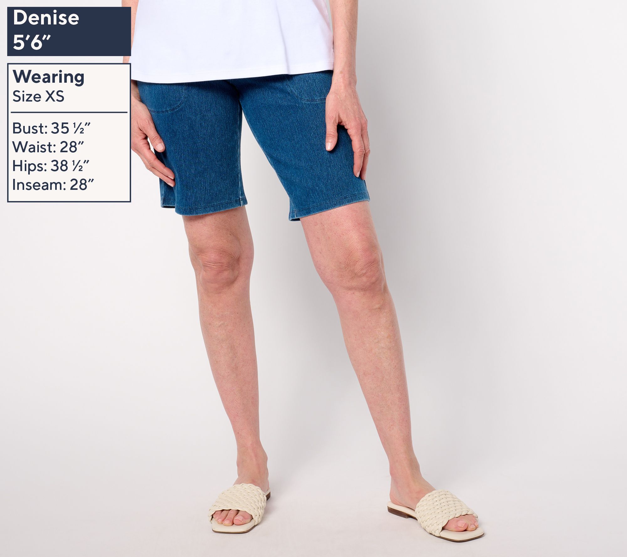 Shorts you'll actuallylove? Find them in this pull-on-and-go pair crafted in Prime Stretch DenimTM. They have the look of classic denim with the comfy, get-everything-done feel of a knit, allowing you to follow a morning of appointments with a spontaneous park stroll or an afternoon of gardening without needing a wardrobe change. How's that for flexible fashion?! From Women with Control®.
