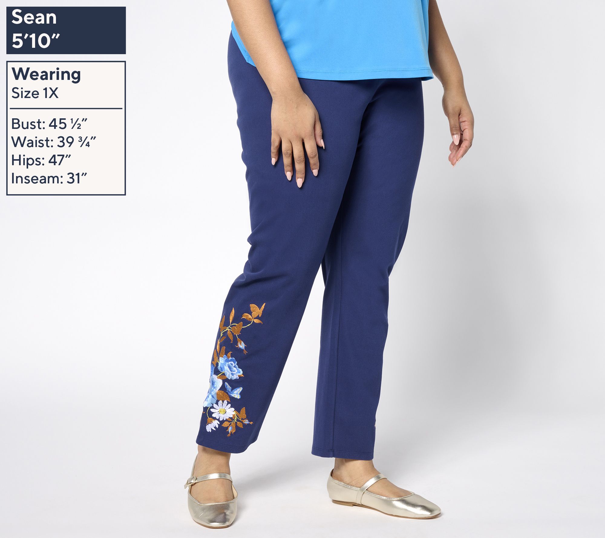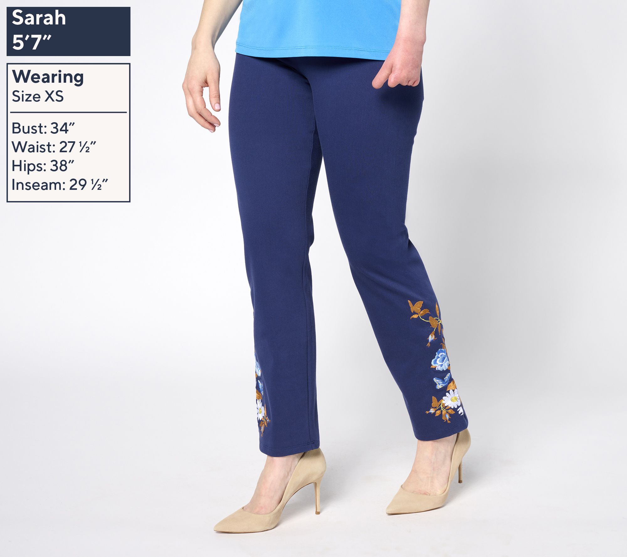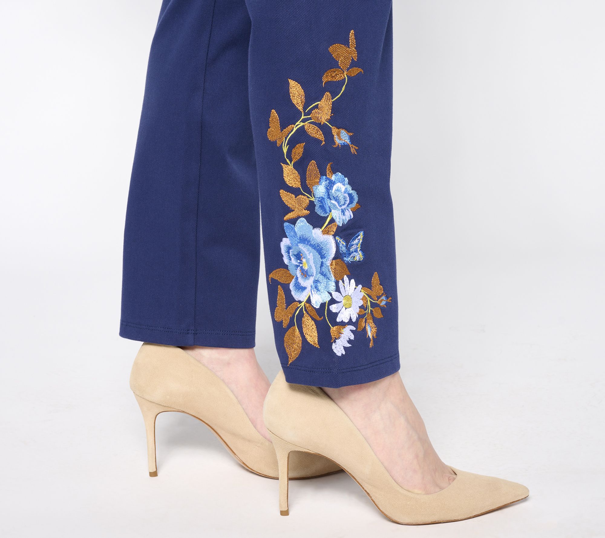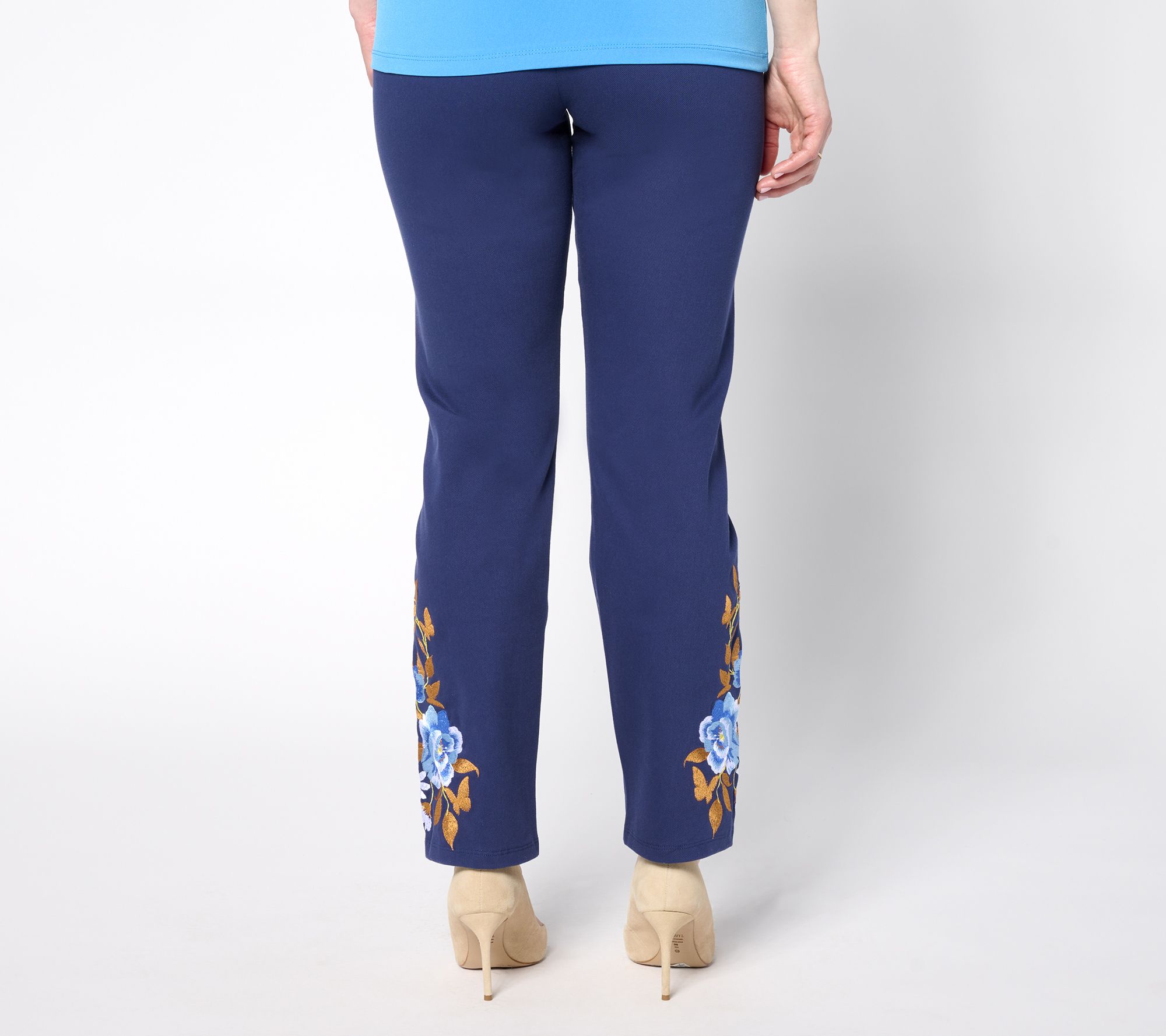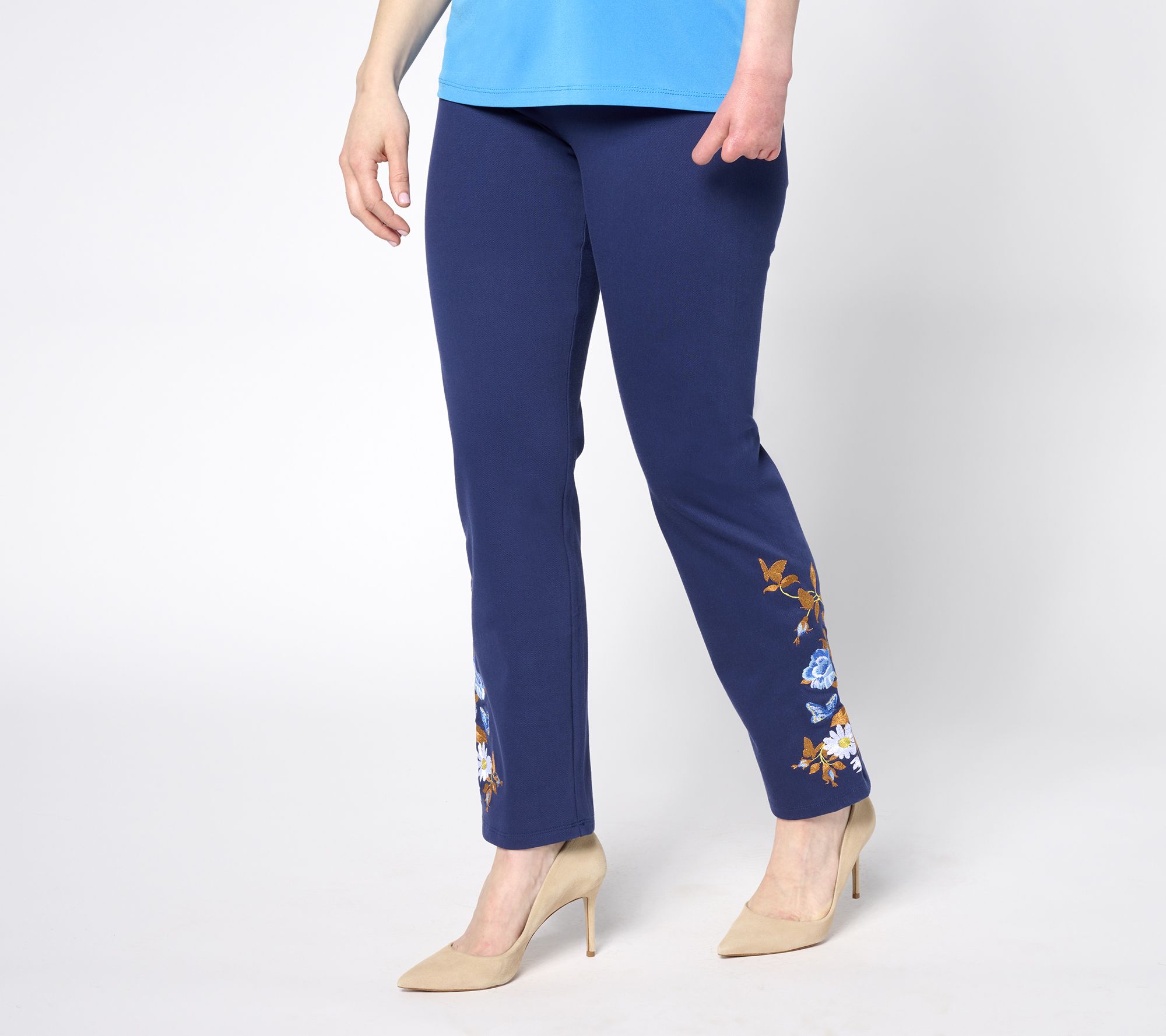 Add a dash of flair to your wardrobe with these denim pants, complete with chic embroidery at the bottom. From Women with Control®.