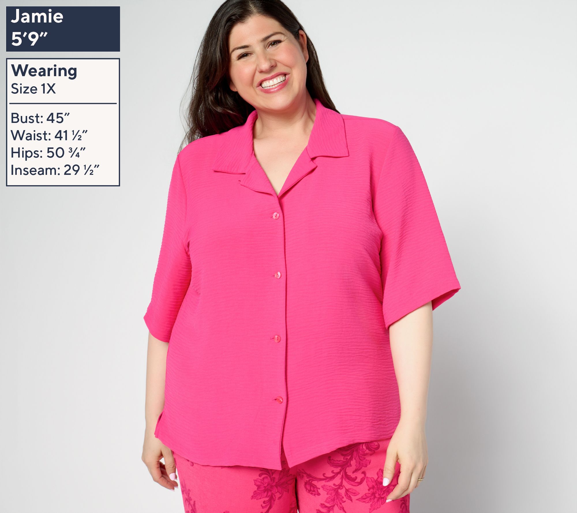 "As Is" Women with Control Woven Button Front Cabana Shirt