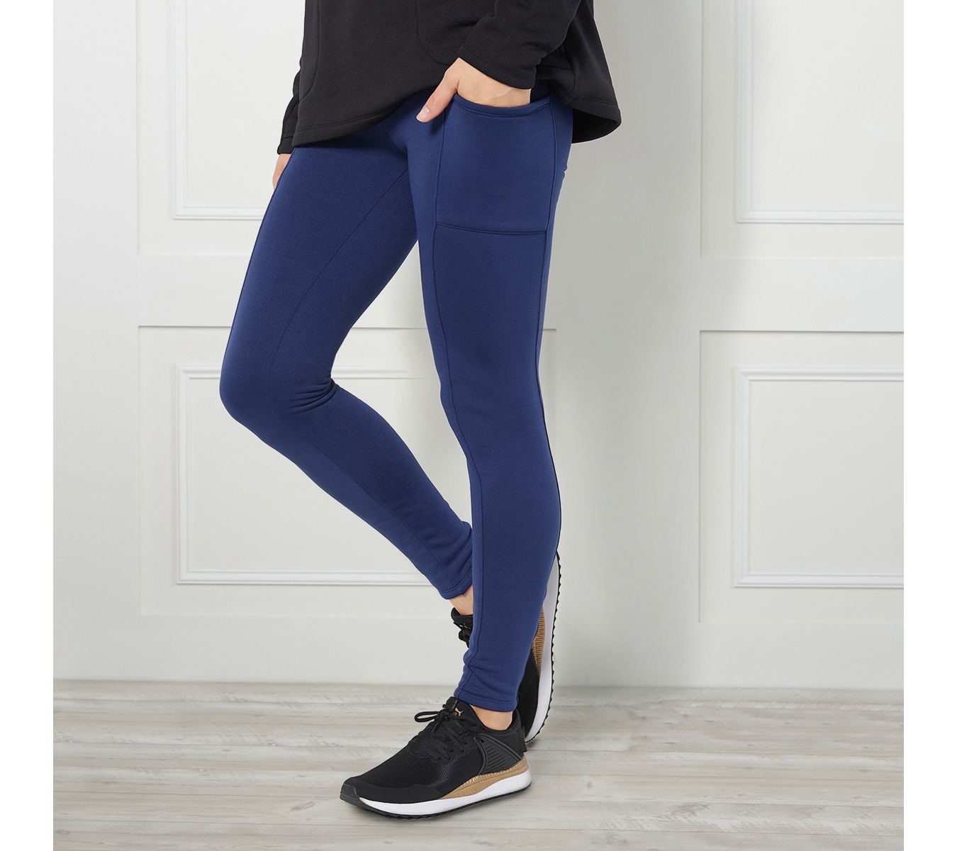 There's leggings, and then there's fleeced leggings -- the star of your winter wardrobe. Say goodbye to chilly morning walks or afternoon runs, and hello to warm-cup-of-cocoa, Sunday-couch-snugglin' vibes (even when you're braving frosty weather). Plus, slip your lip balm, keys, or phone into the convenient side-panel pocket for hands-free ease. Everyone needs at least one pair. From zuda® Fashions.