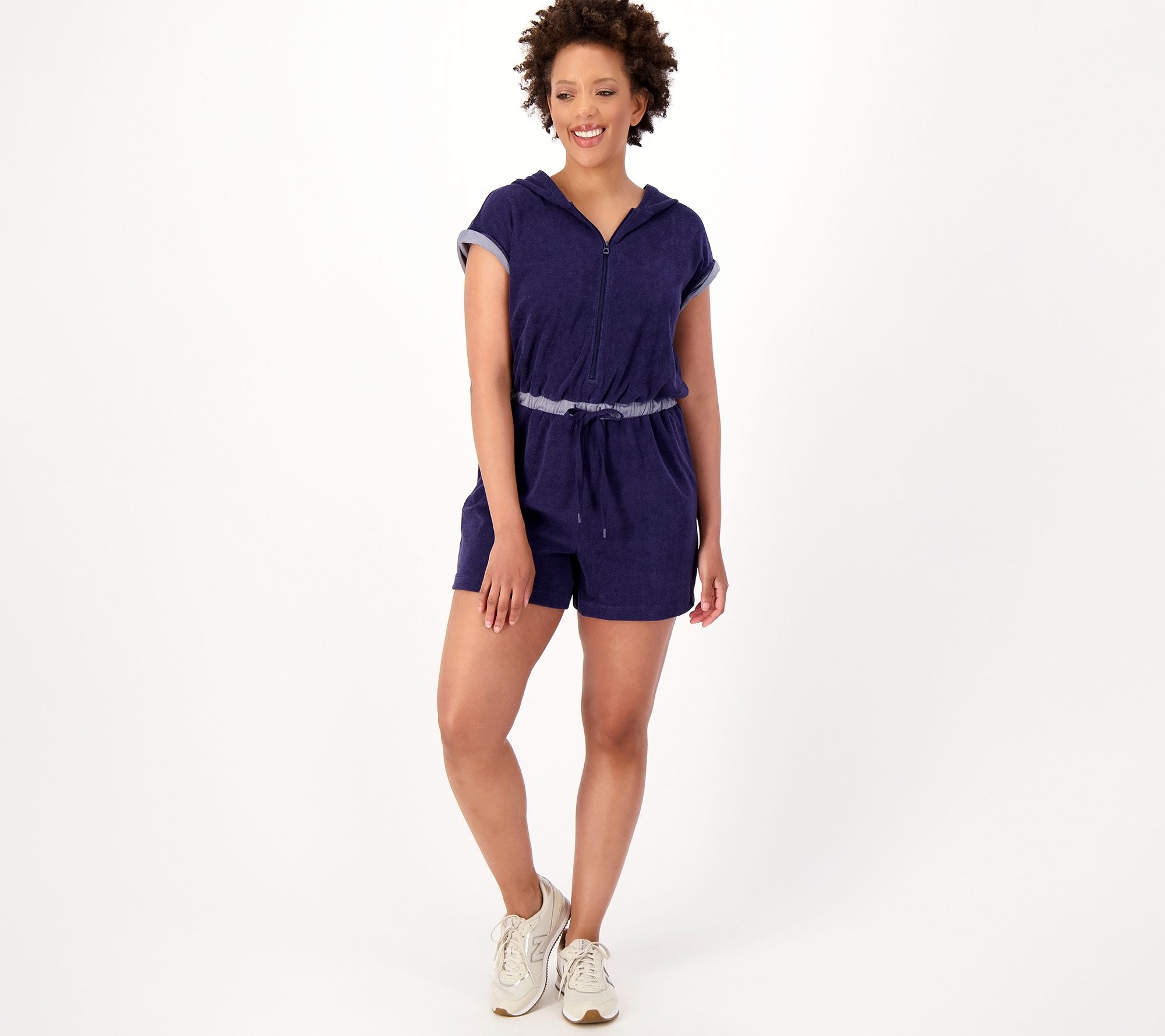 "As Is" zuda Hooded Towel Terry Romper with Drawstring