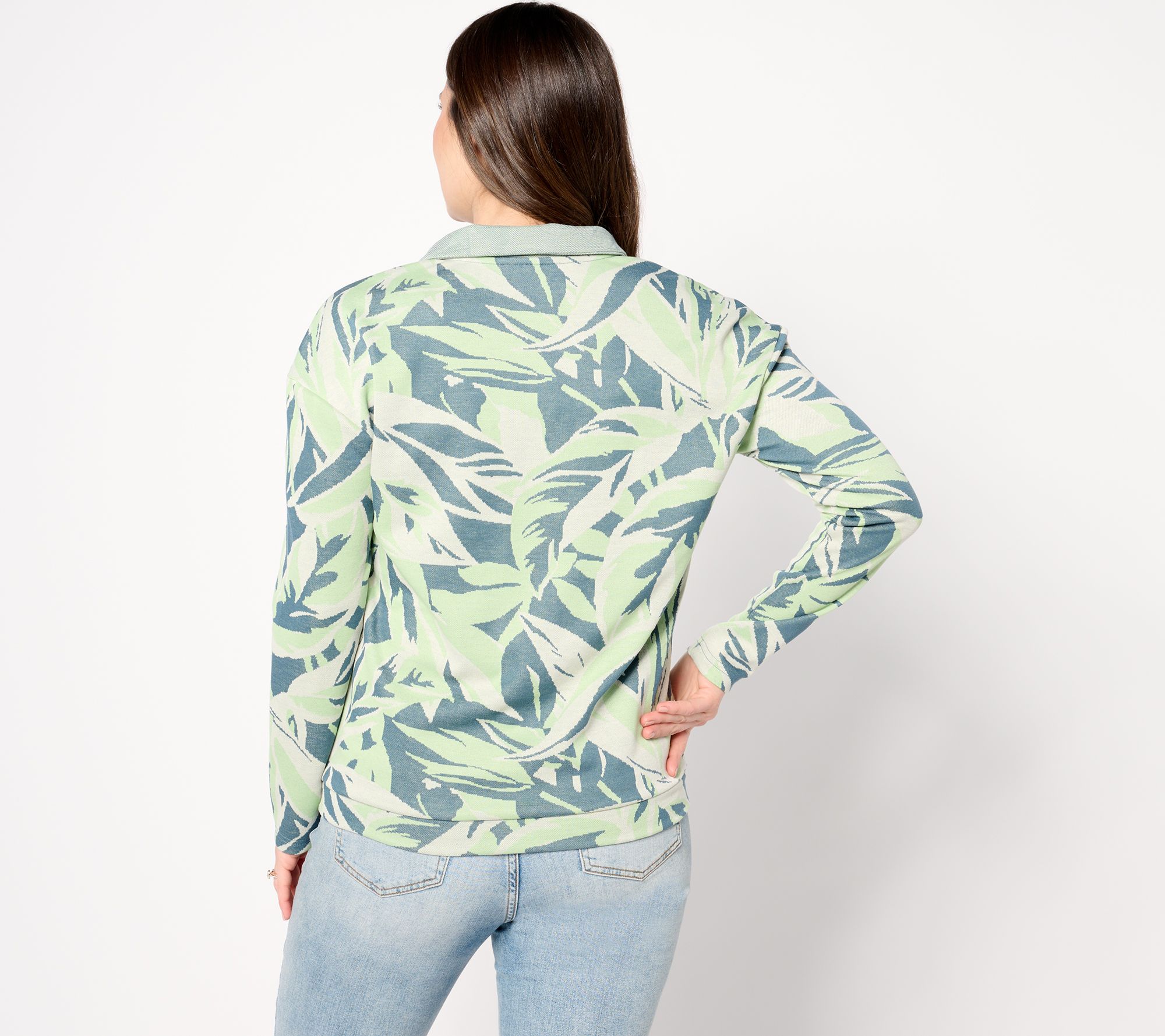 "As Is" zuda Palm Jacquard Knit Collared Top