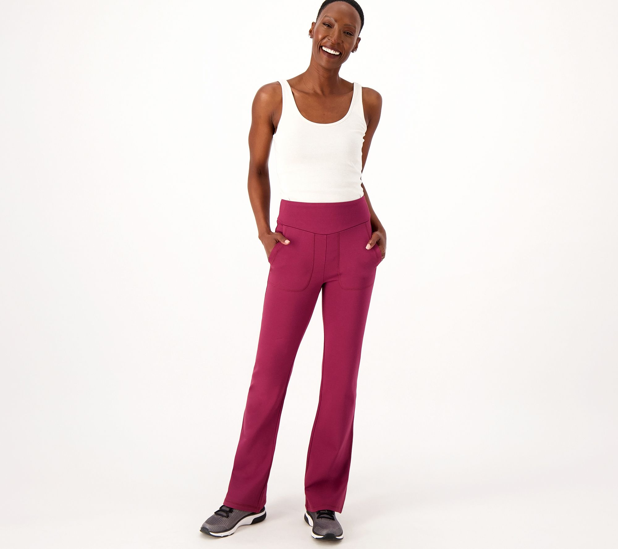It's not a stretch to say it: these updated yoga pants win you over with the very first wear. Fabricated in a sturdy, stretchy ponte knit that moves moisture away from the body (because workouts can get sweaty), and lets you look/feel your best everywhere from the grocery store checkout to the sports stadium, they're the pull-on-and-go pair that's giving too-thin leggings a run for their money. (About time!) From zuda®.