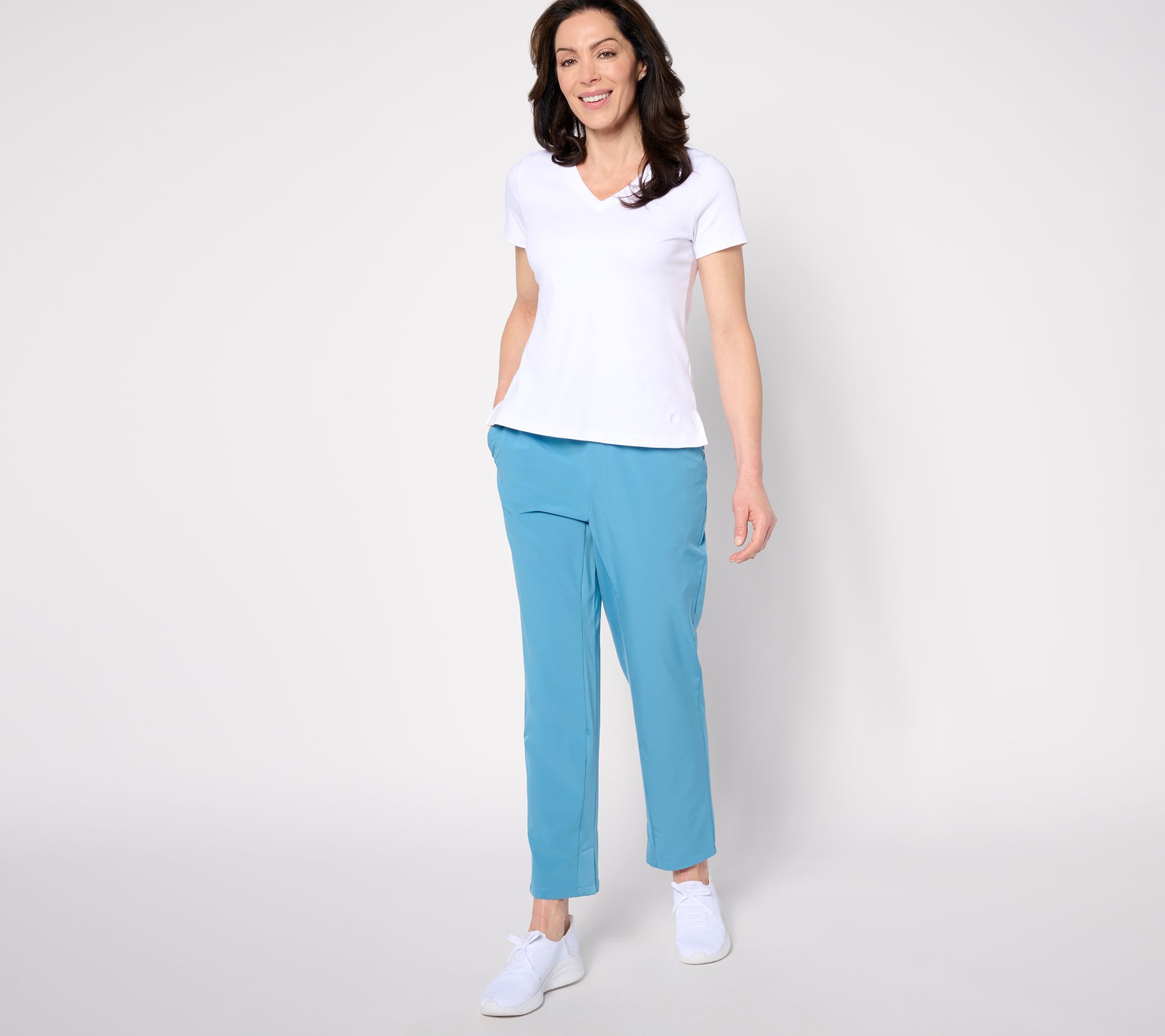 Packed agenda? Go from dog walks to dashing to appointments to picking up dinner (and a latte for yourself!) in these active-minded stretch woven pants. (Save some room in your luggage, too, for this travel-loving style!). From zuda®.