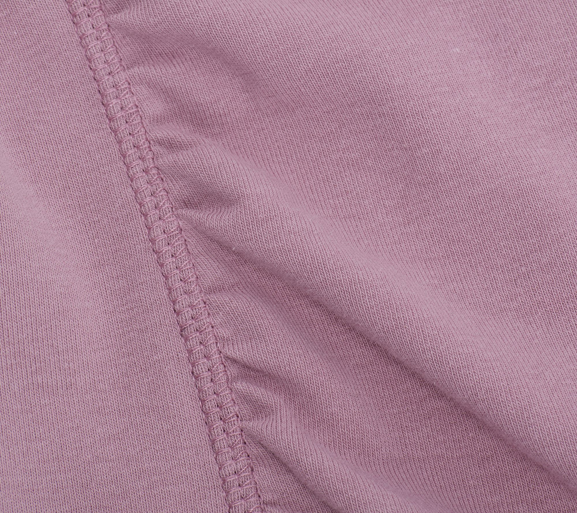 • Features: round neckline; set-in self neckband; ruching at front side panel; exposed double needle stitching at side panel; short, set-in sleeves