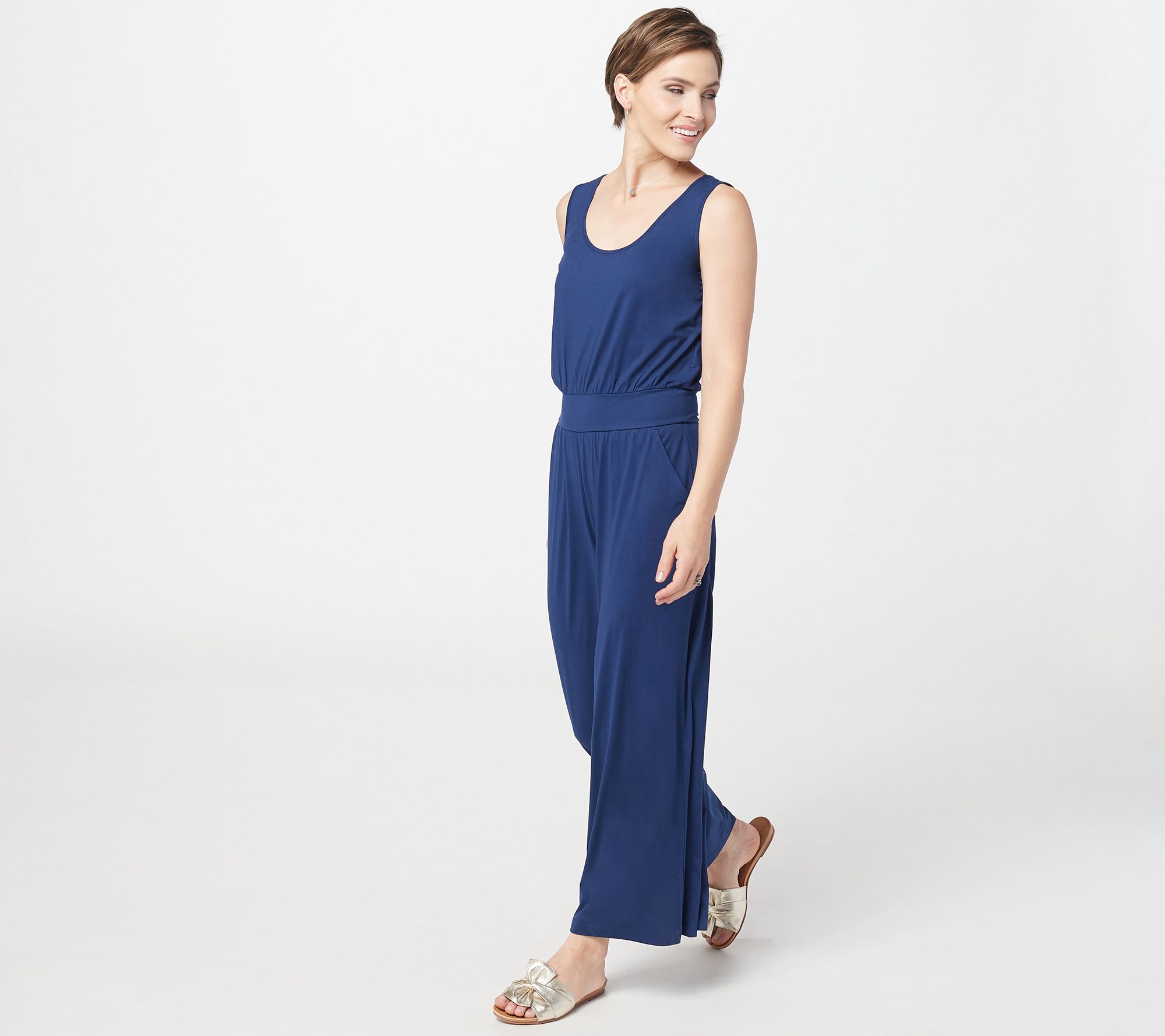 Sashay your way into a sunny season full of garden strolls, weddings, and seaside dining -- not ready to lose full coverage, though? No problem! This zuda® wide-leg jumpsuit is cool-to-the-touch, breezy, and beautiful. From zuda®.