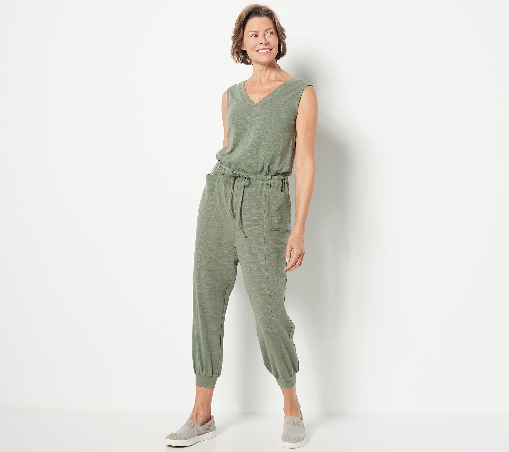 Slip into this knit jumpsuit for an easy, breezy feel that looks amazingly chic. Summer bike rides, strolls around the neighborhood, and grocery runs are just some of the places you could don this stunner. From zuda®.