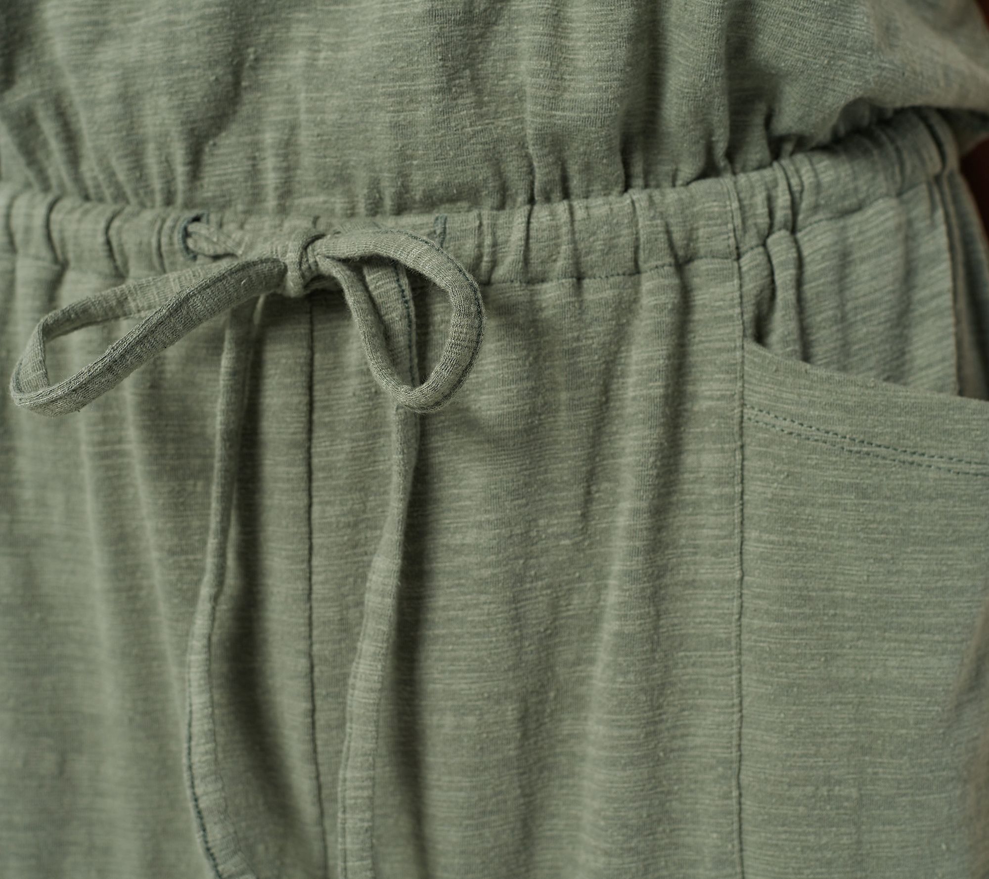 • Features: V-neckline, armhole finished with interior self-binding, elastic waistband with functional drawcord