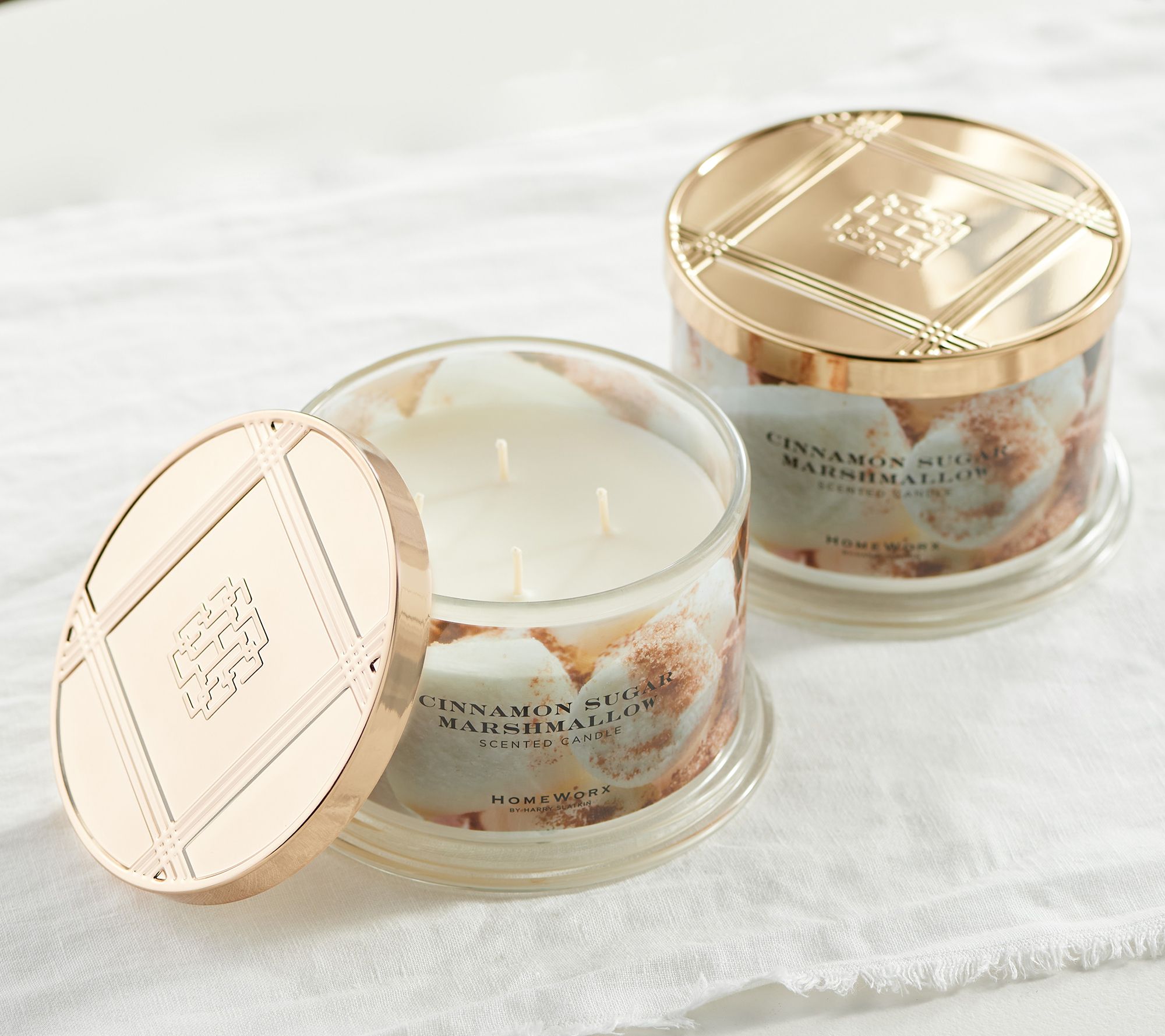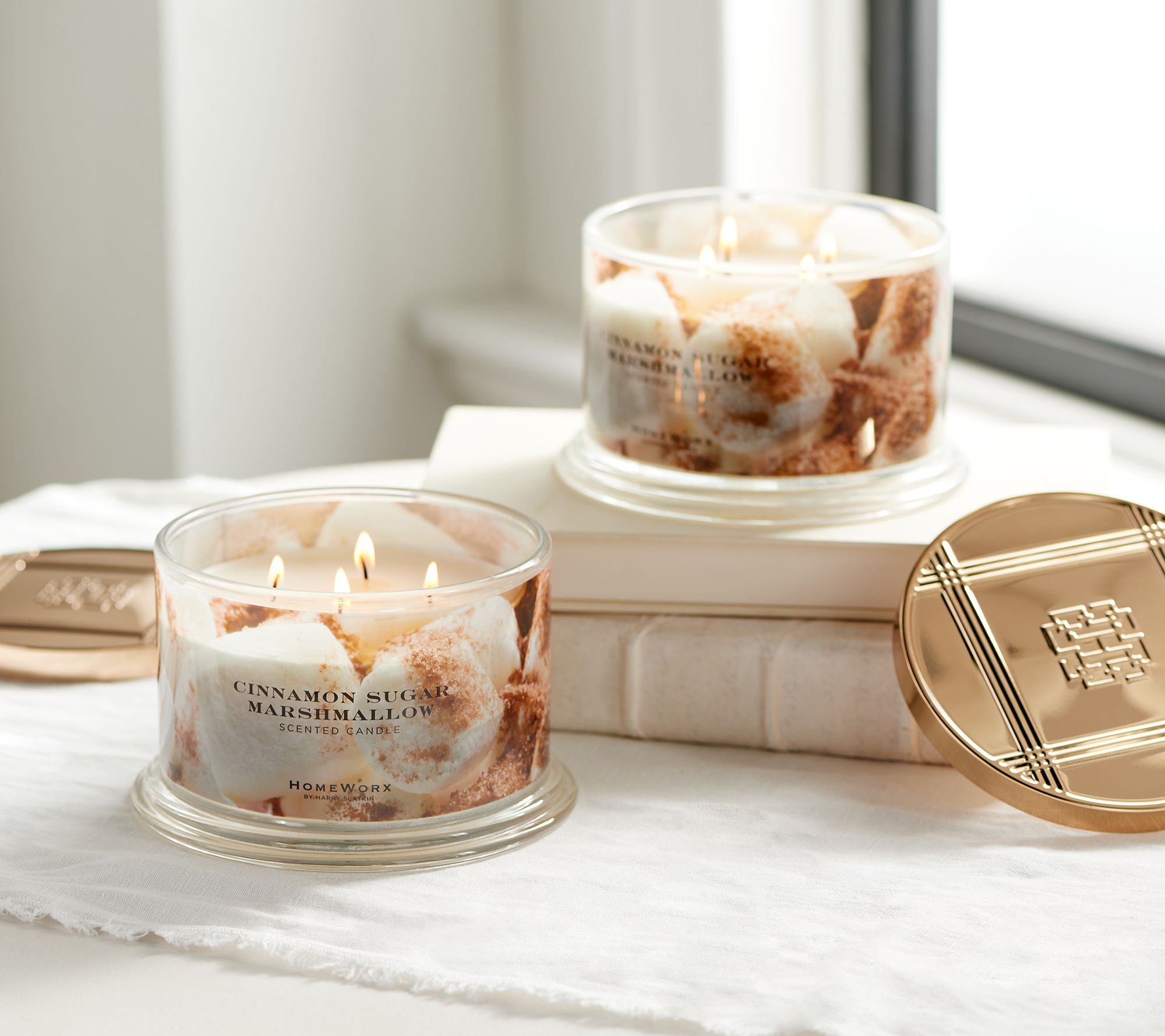 Fill your home with the aromatic scent of Cinnamon Sugar Marshmallow (s'mores, anyone?), thanks to this set of two 18-oz, four-wick candles. From HomeWorx by Harry Slatkin.