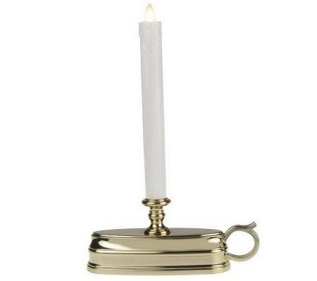 Add an illuminating glow to your home with this Luminara window candle. Featuring an old-world base with a loop handle, the flickering candle creates a realistic flame effect. Use it to light up windowsills, end tables, night stands, or mantels with a warm glow this holiday season. From Bethlehem Lights.