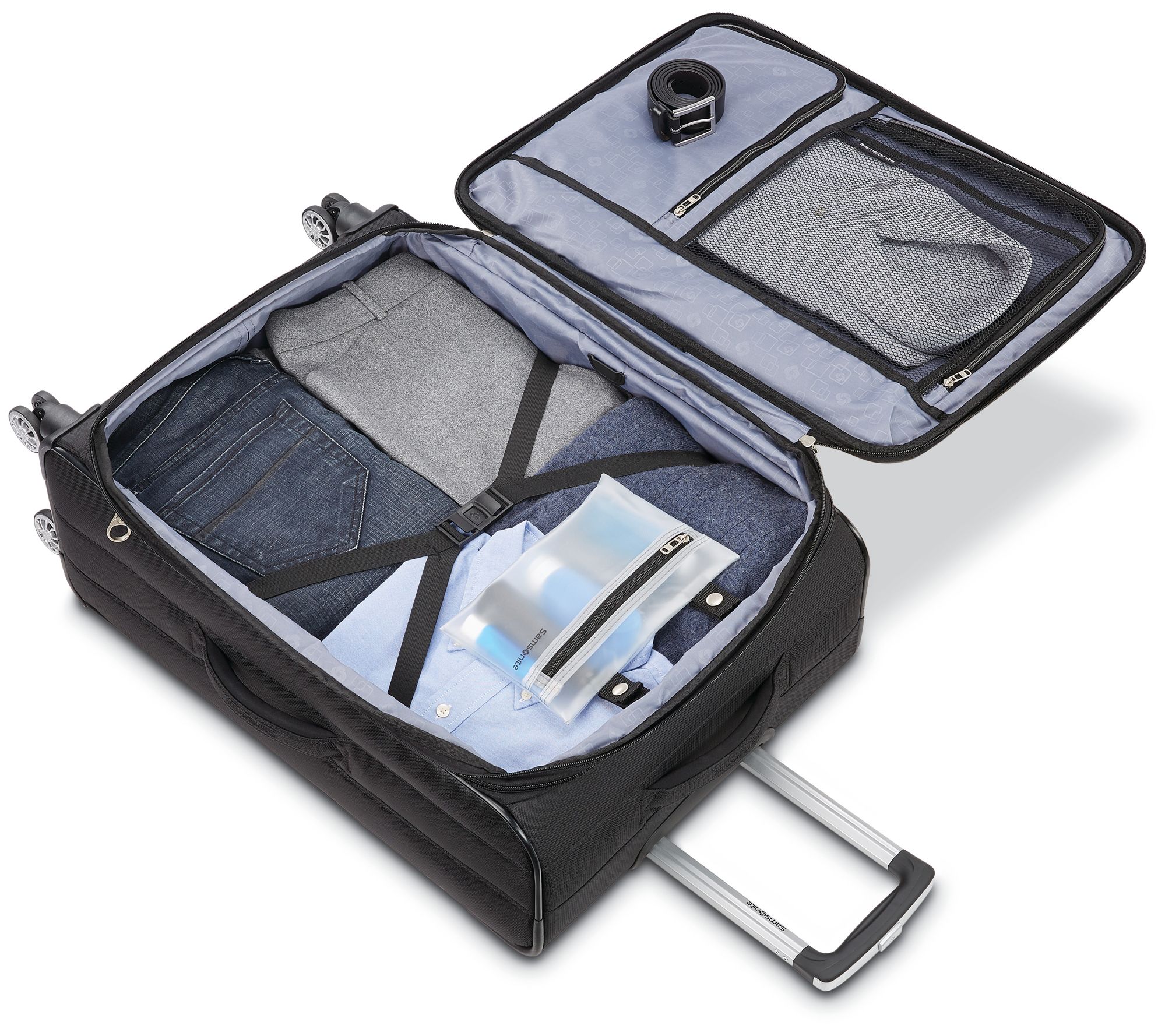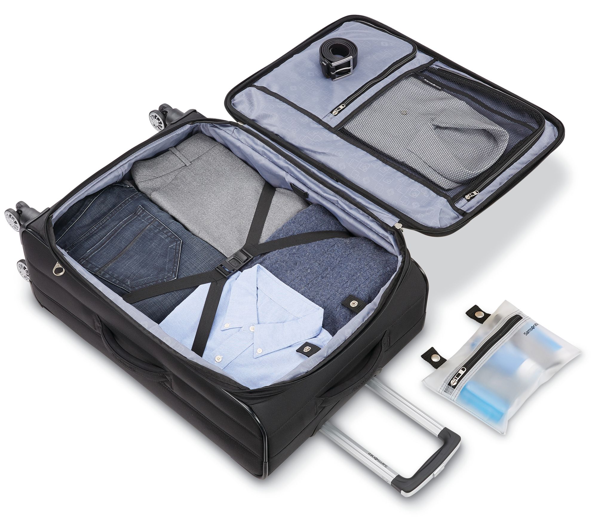 this lightweight spinner suitcase. Its minimal design can be expanded to pack in just a little more. From Samsonite.