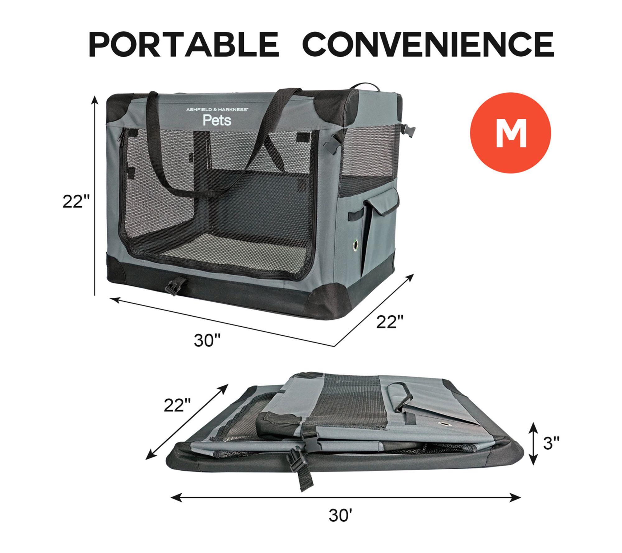 Ashfield & Harkness Collapsible 30in Soft Dog C rate