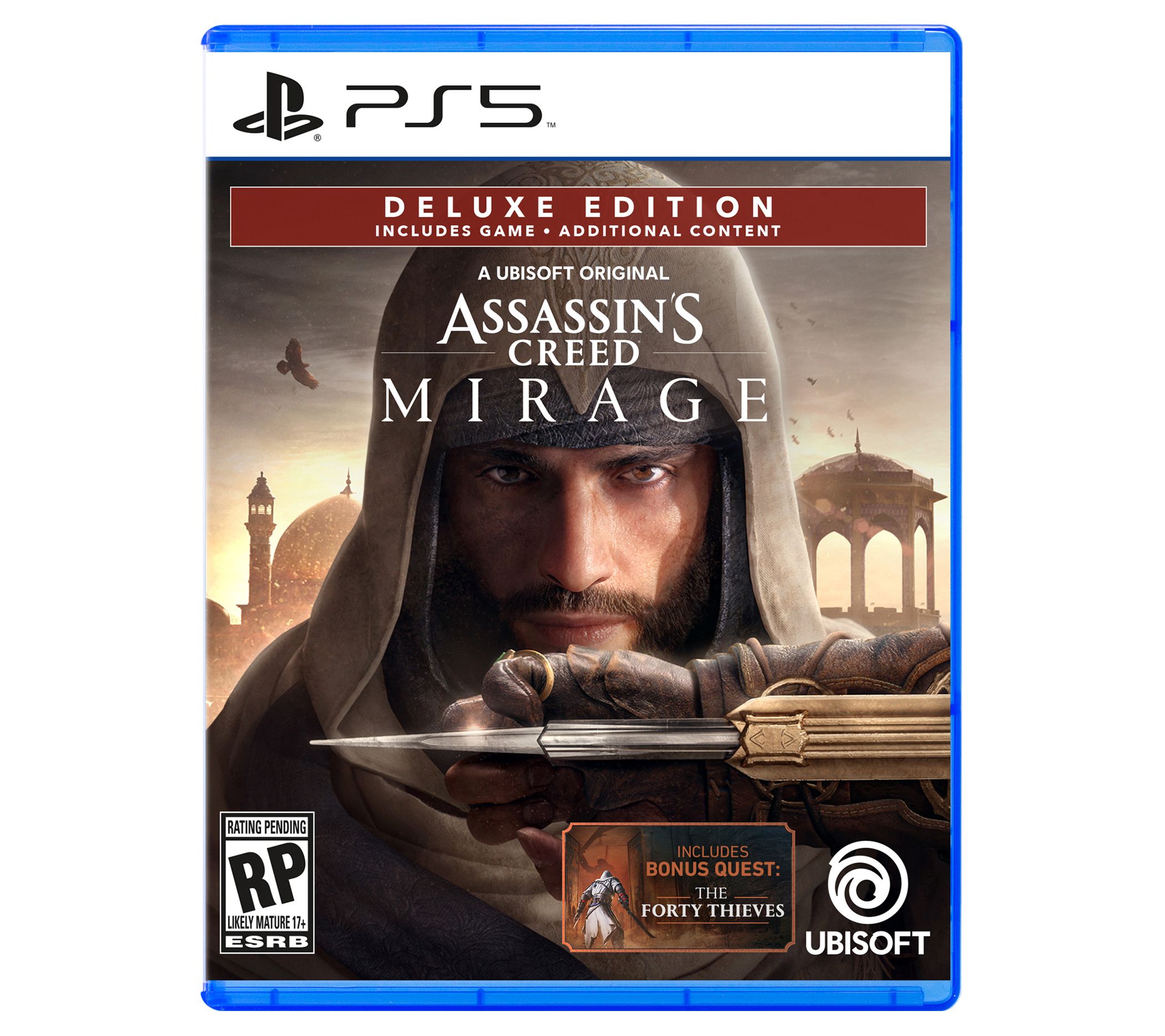 This deluxe edition of Assassin's Creed Mirage includes a Prince of Persia-inspired outfit, eagle and mount skins, weapons, and more. Plus bonus content with a digital artbook and digital soundtrack. From Ubisoft.