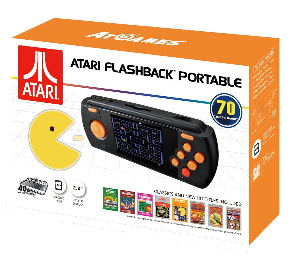 Includes Atari Flashback portable console with A/V cable, charger, and 70 preloaded games