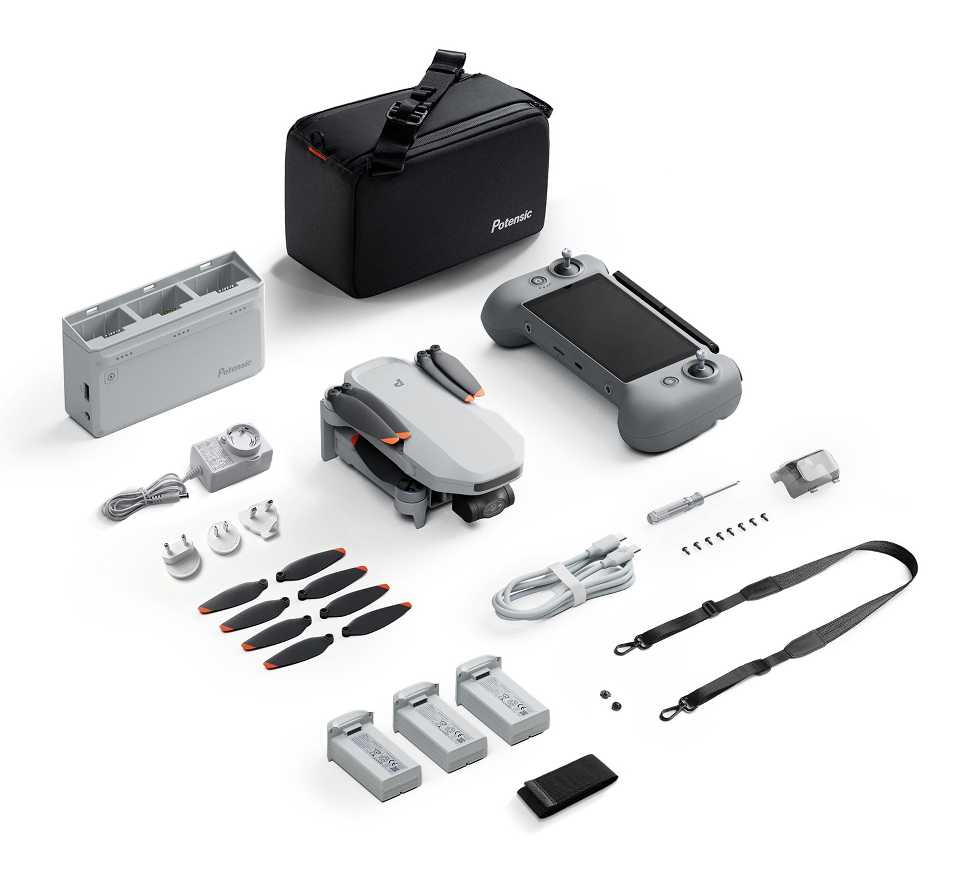 • Includes ATOM 2 drone, display remote controller, two lithium-ion batteries, extra propellers, and strap