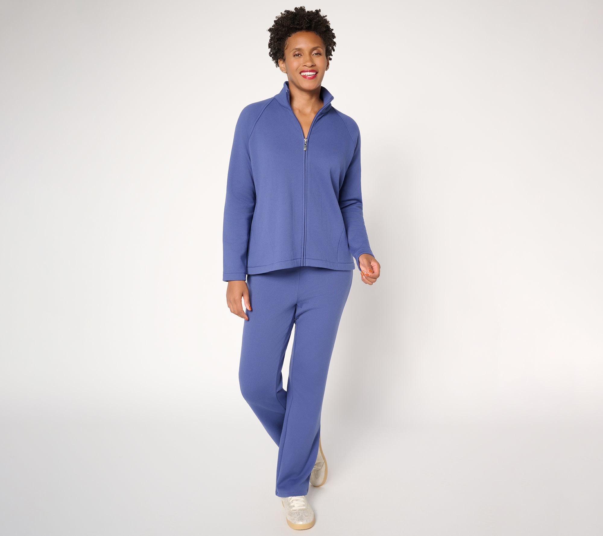 Stay stylish and comfortable in this knit jacket -- whether layered over a weekend lounge look or worn for a quick trip to the market. Raglan sleeves and a funnel collar combine sporty flair with casual coziness, while a zip-front and deep side pockets add ready-to-go functionality. From Women with Control®.