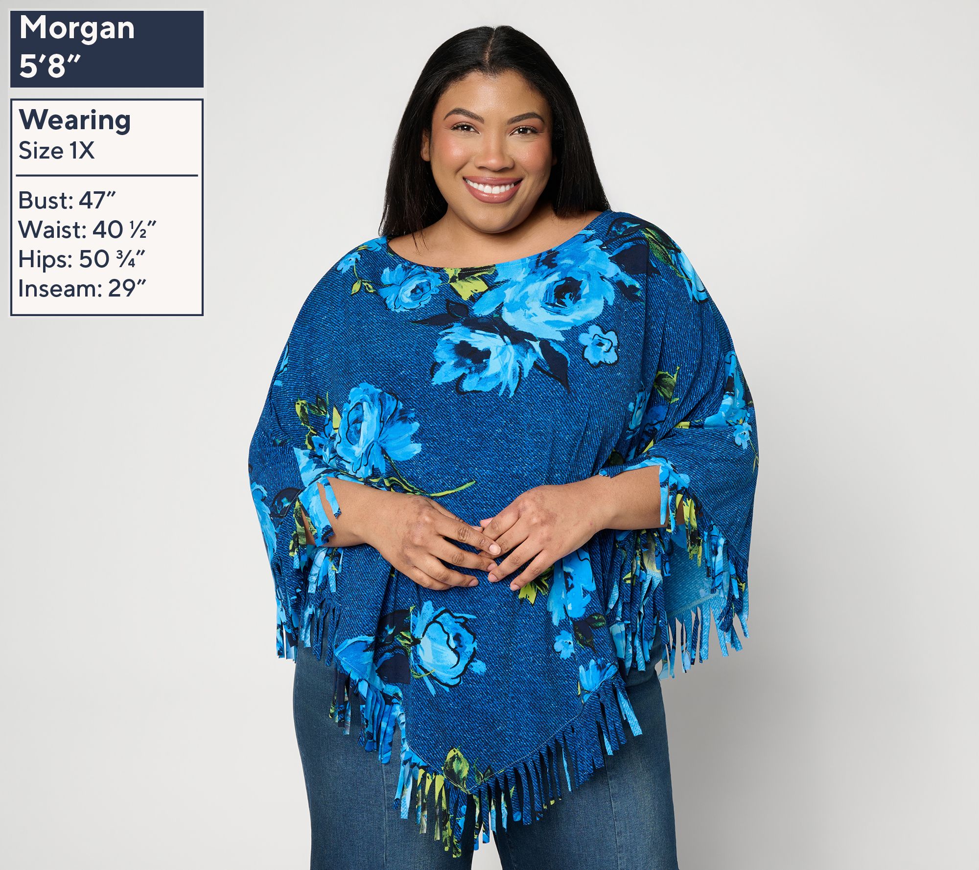 Easy movement meets bold flair in this poncho, designed with flowy Como Jersey fabrication and finished with playful fringe that sways with every step. This playful piece bridges the gap between casual afternoons and nights out, adjusting to your mood and style. From Women with Control®.
