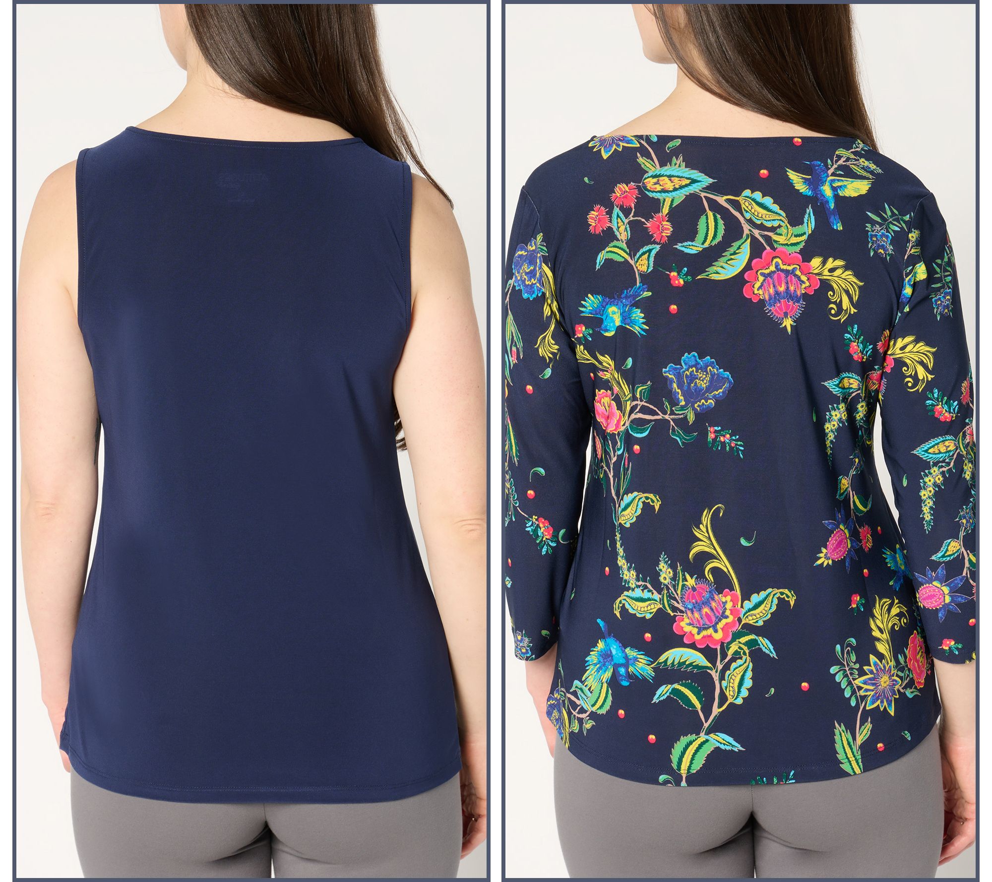 All set to... travel? entertain? pursue a new career path? Now you are, with this solid-colored tank and printed top pairing! Crafted from fluid, machine-washable Como Jersey, the pieces are ultra easy to pack in a suitcase or pop on when you've got mere minutes to get out the door. From Women with Control®.