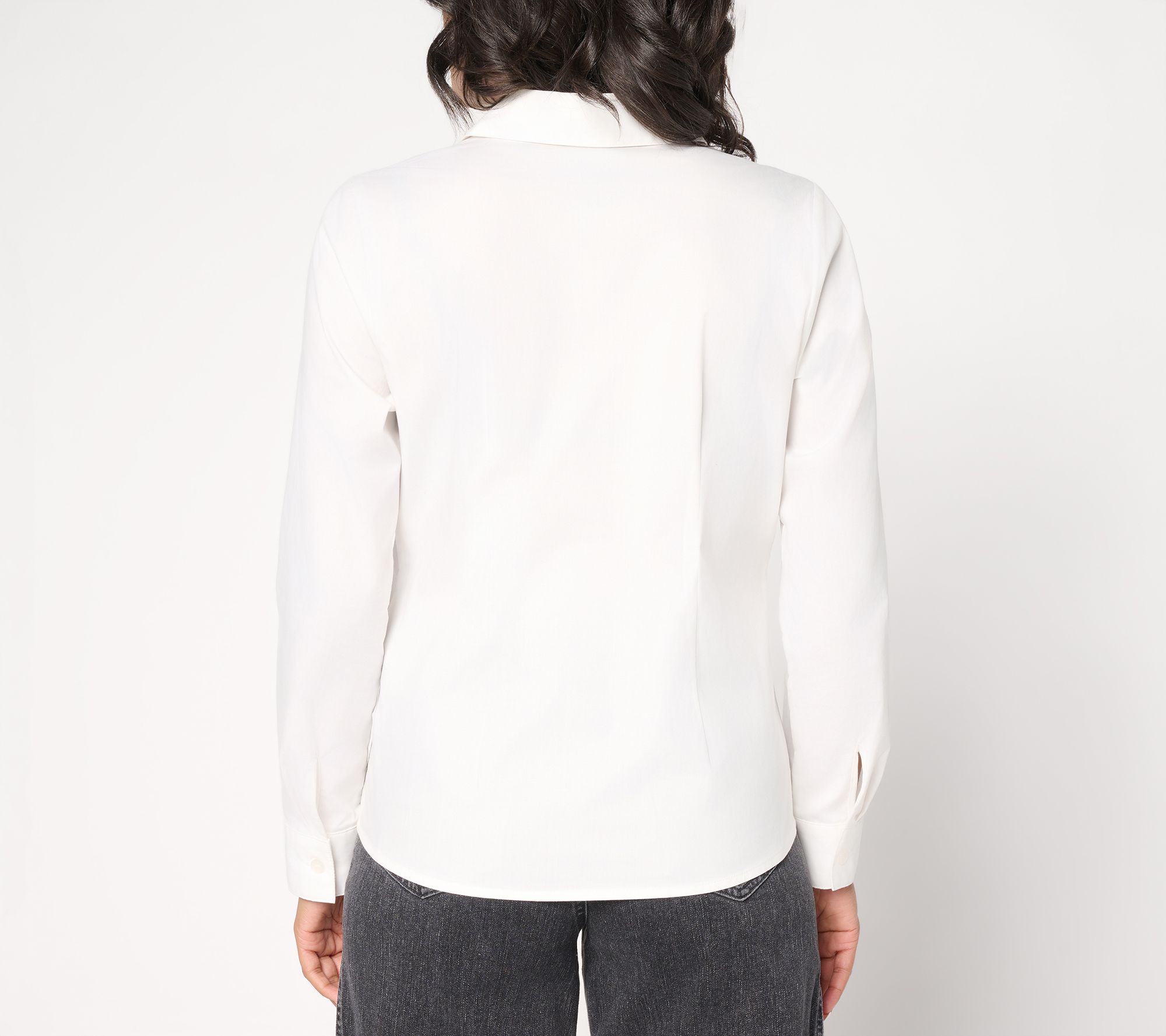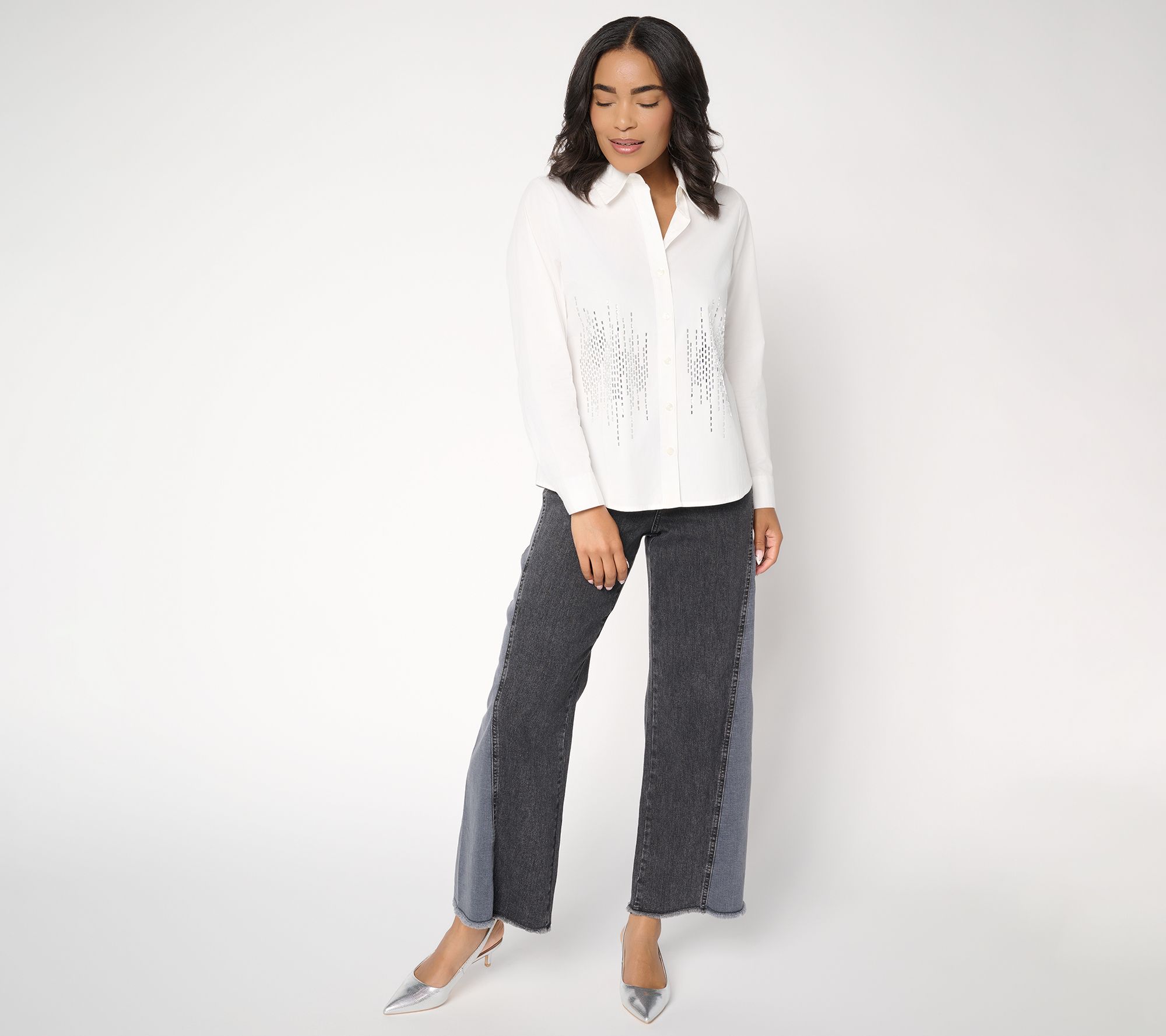 Whether you're meeting friends for brunch or dressing up for a special occasion, this woven blouse brings sparkle to your style thanks to rhinestone accents on the front. Button-front detailing and a shirttail hem offer polish, while its semi-fitted shape lets you move comfortably through any occasion. From Women with Control®.