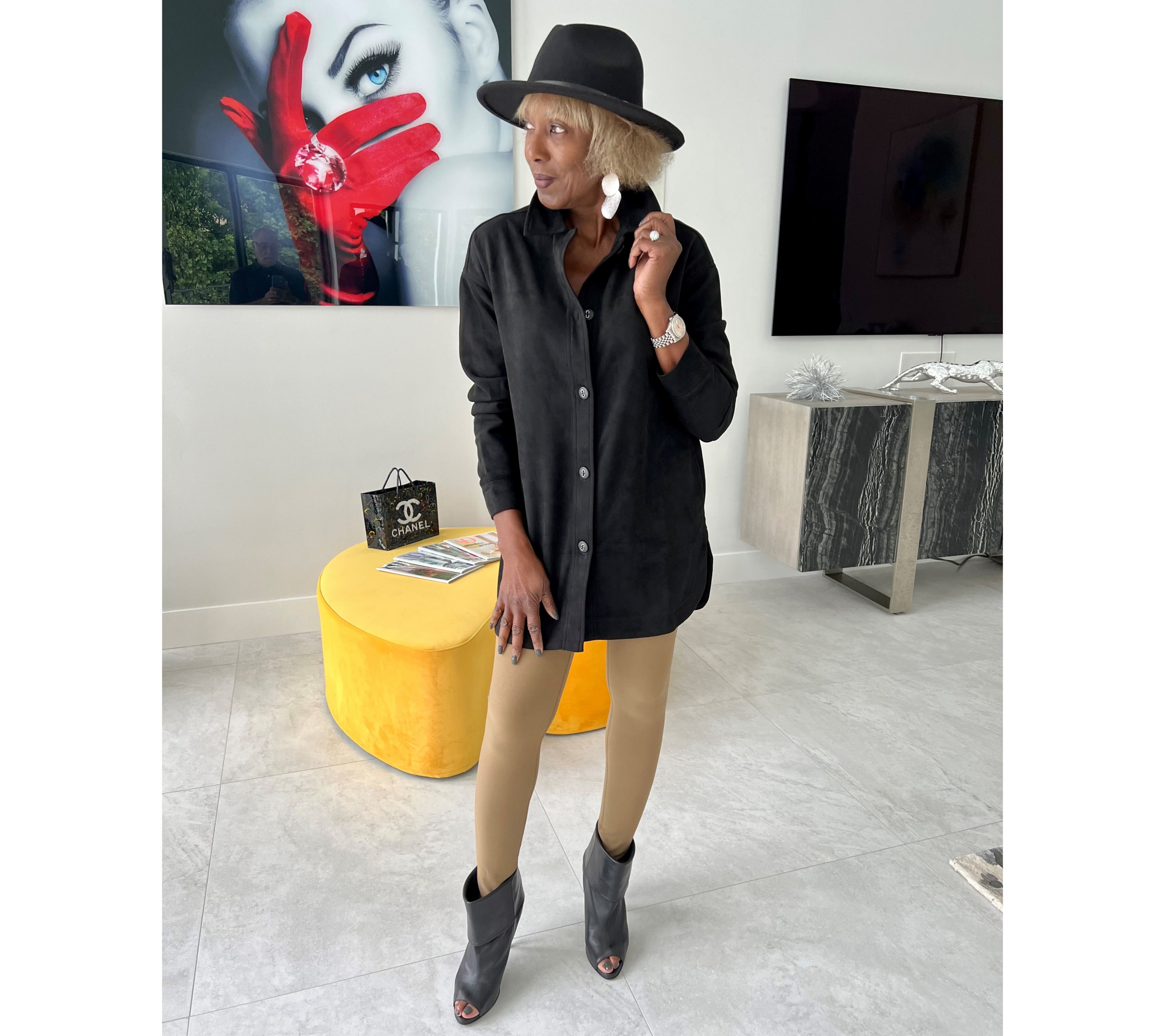 The polished feel of a button down meets a trendy faux-suede feel, for a design you can dress up or down and style for just about any occasion. We're loving this top for the office paired with ballet flats or tucked into straight-leg jeans and paired with stylish leather booties. From Women with Control®.