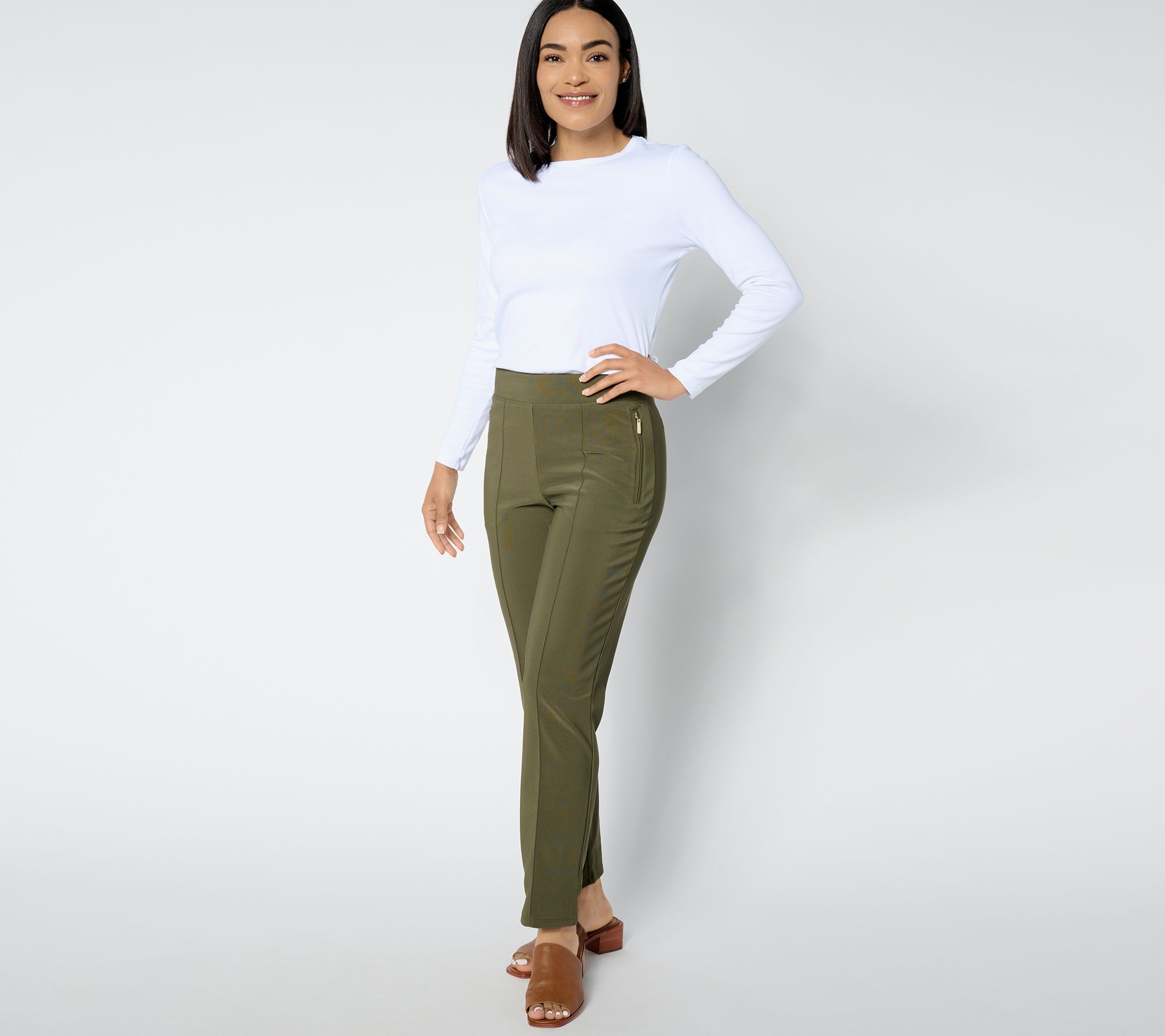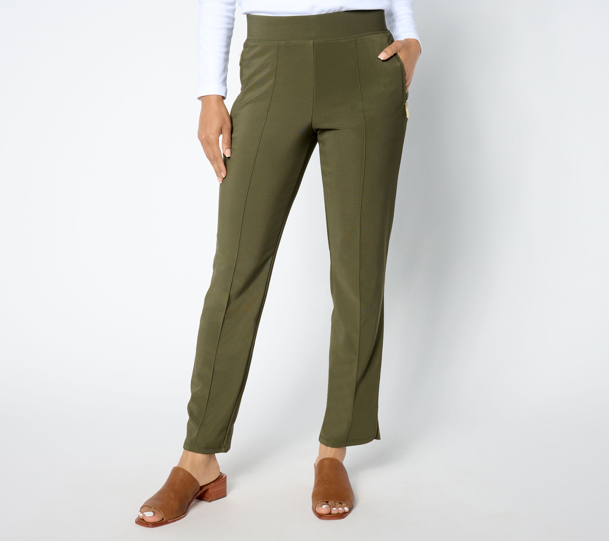 Push your pants collection to the back of the closet and make room for effortless everyday style. The semi-fitted design of these knit ankle pants features a two-ply encased elastic waistband to help prevent rolling and to ensure both comfort and a sleek look. Dress them up or down to make them perfect for any occasion! From Women with Control®.