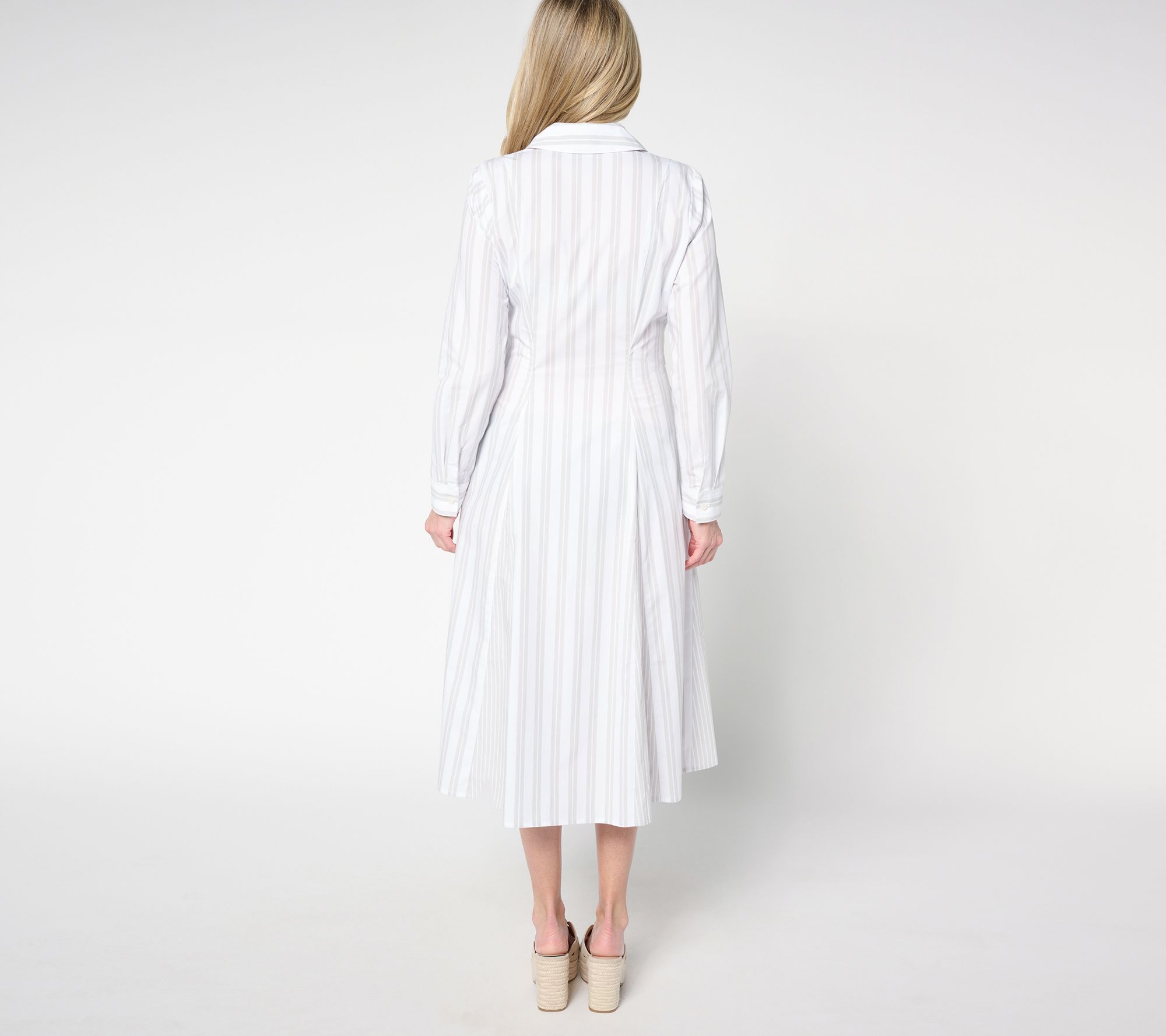 A classic mixed stripe pattern gives this midi dress timeless appeal. Go for a casual-chic look with sneaks and an oversized tote or dress it up with wedge espadrilles and a cute clutch for a more upscale energy. From Women with Control®.