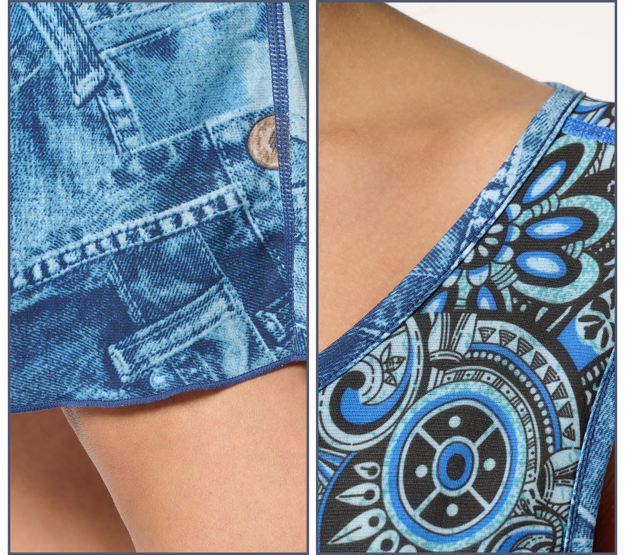 Features: reversible print, 3/8" self binding at neckline and armhole, purl edge