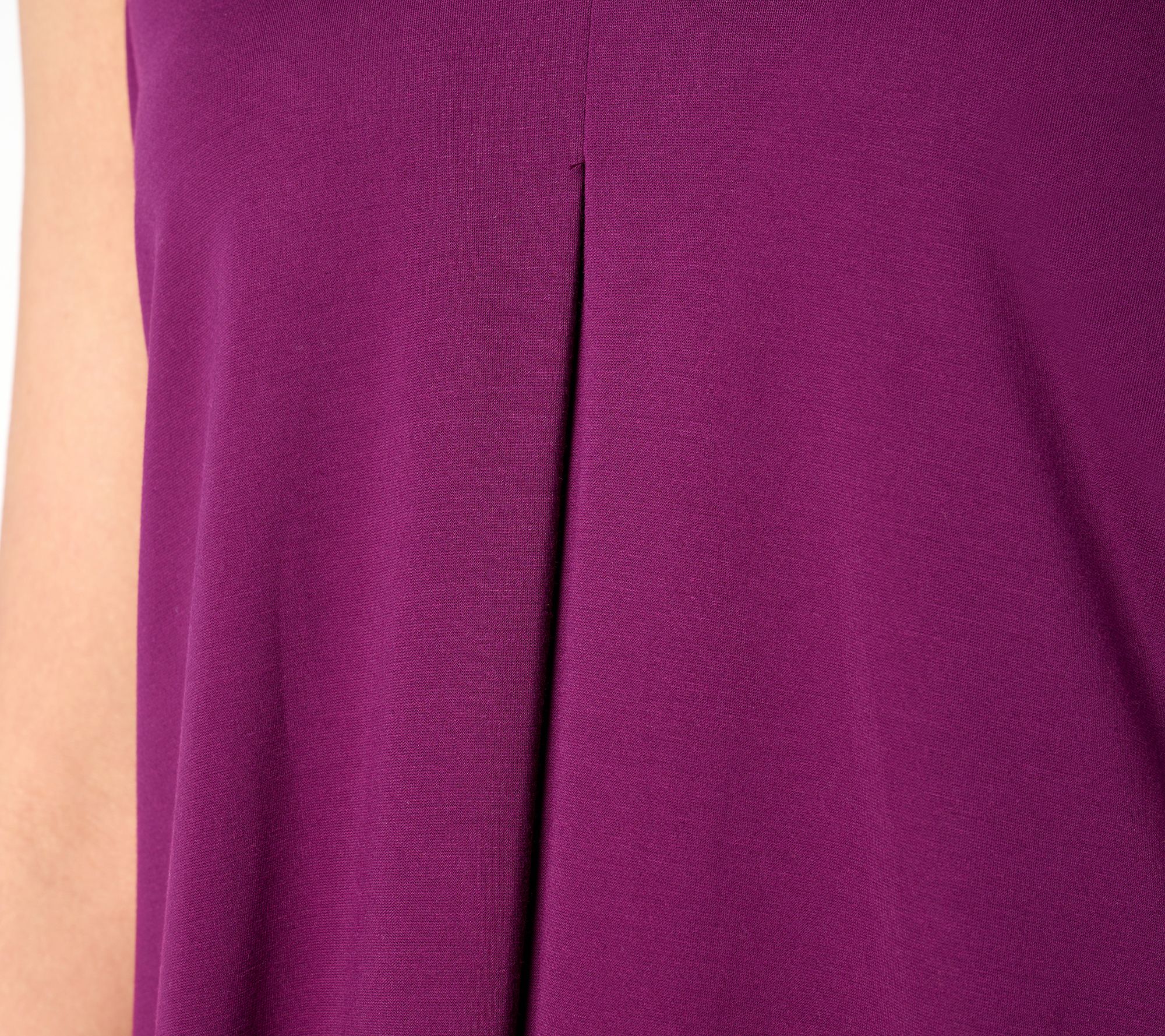 - Features: sleeveless, inverted box pleat and godet, clean-finished V-neckline