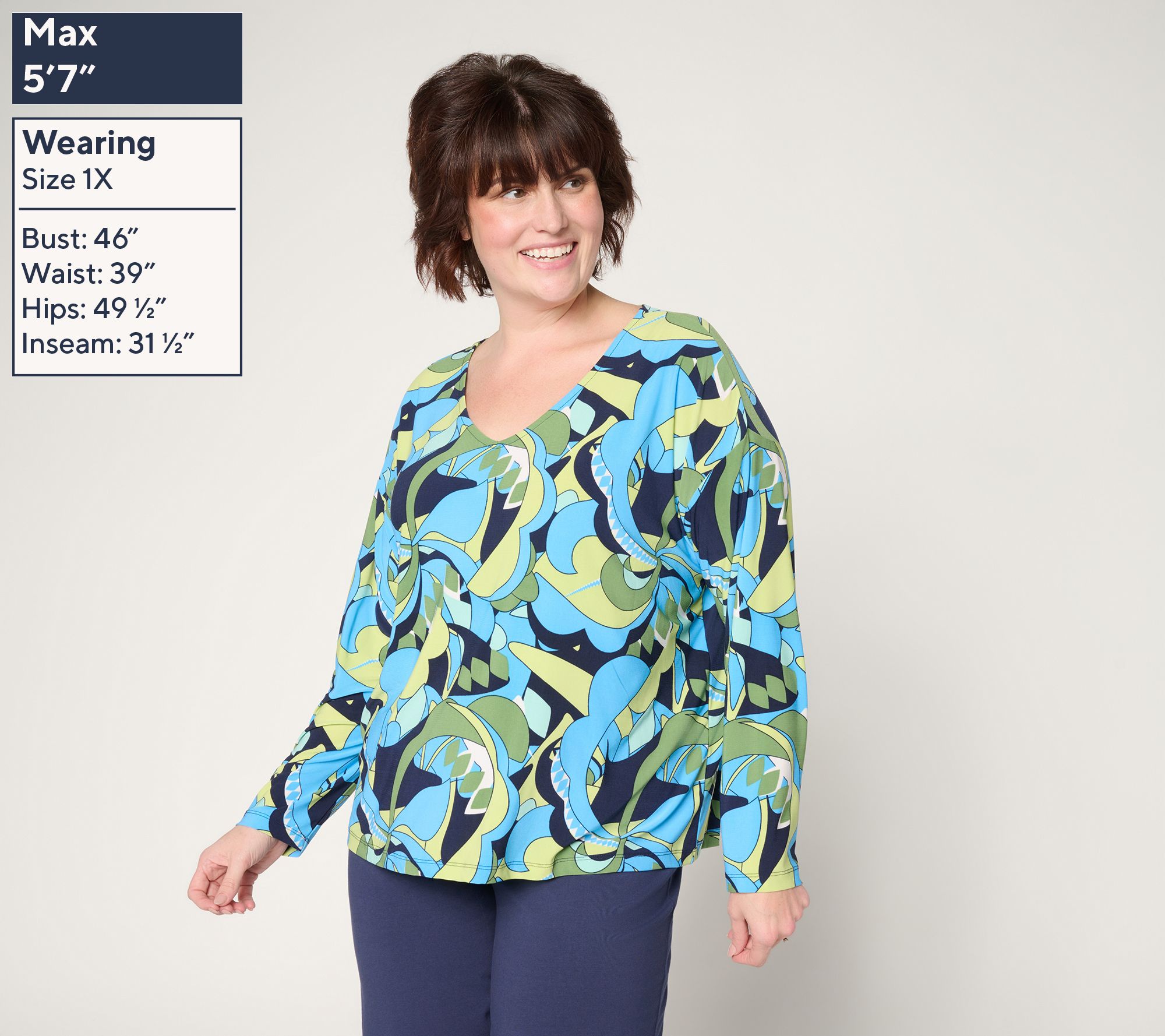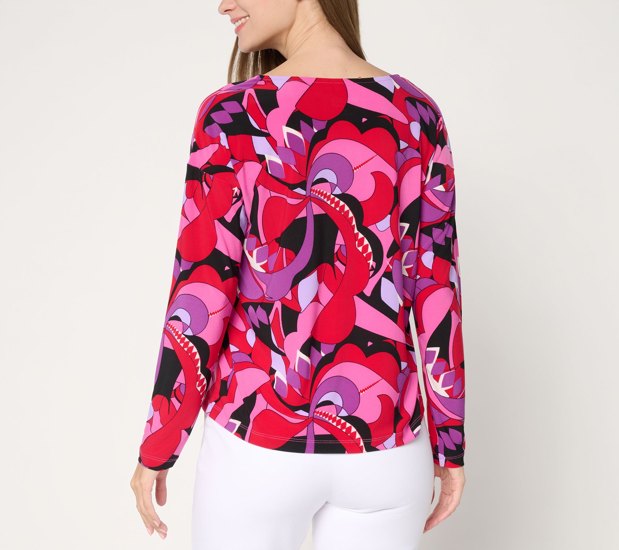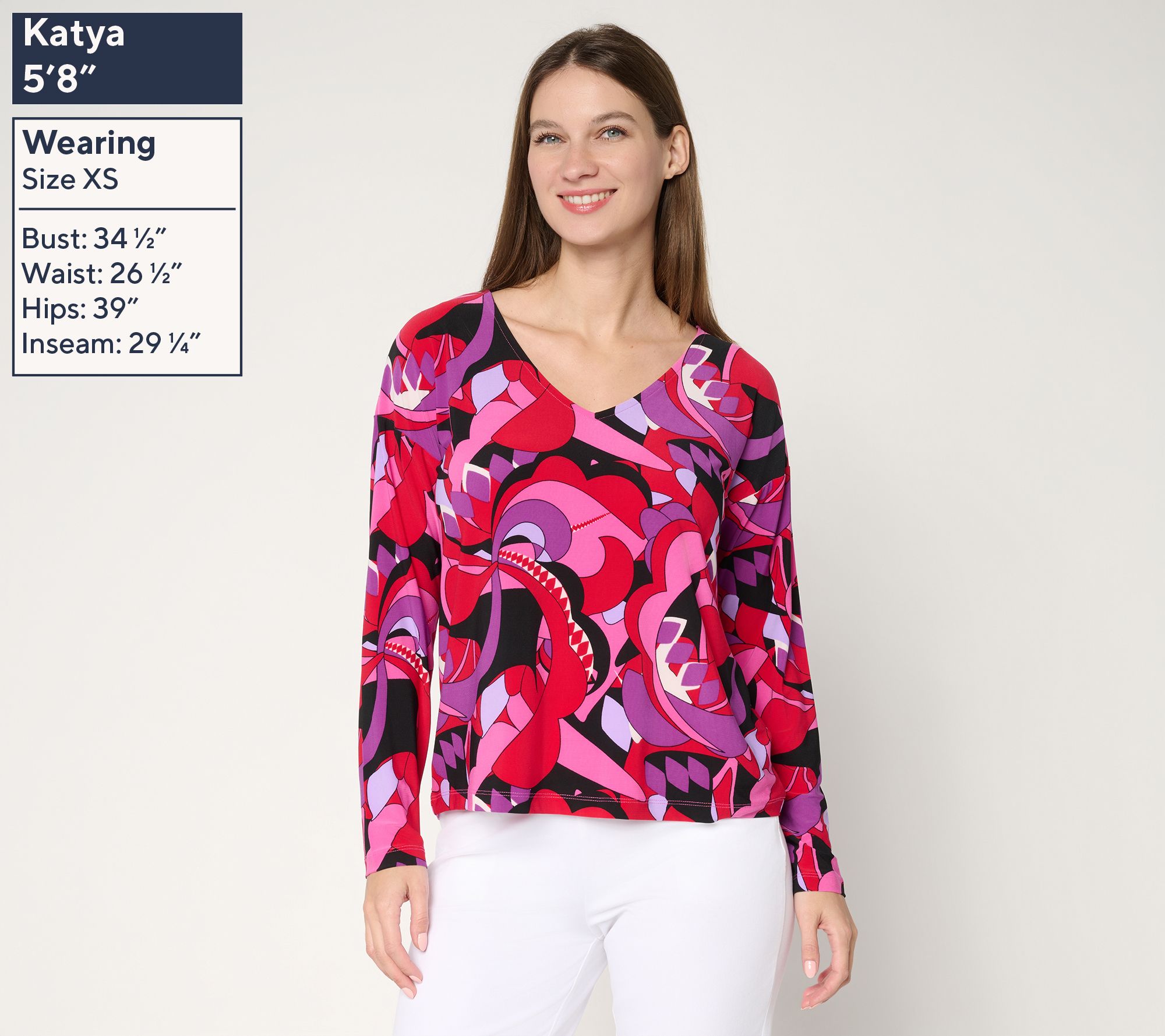 Style meets comfort for everyday outings with this printed Como Jersey top. The bold mod print and V-neck pair effortlessly with everything from jeans to sleek pants for a look that transitions from work to weekends in a snap. From Women with Control®.