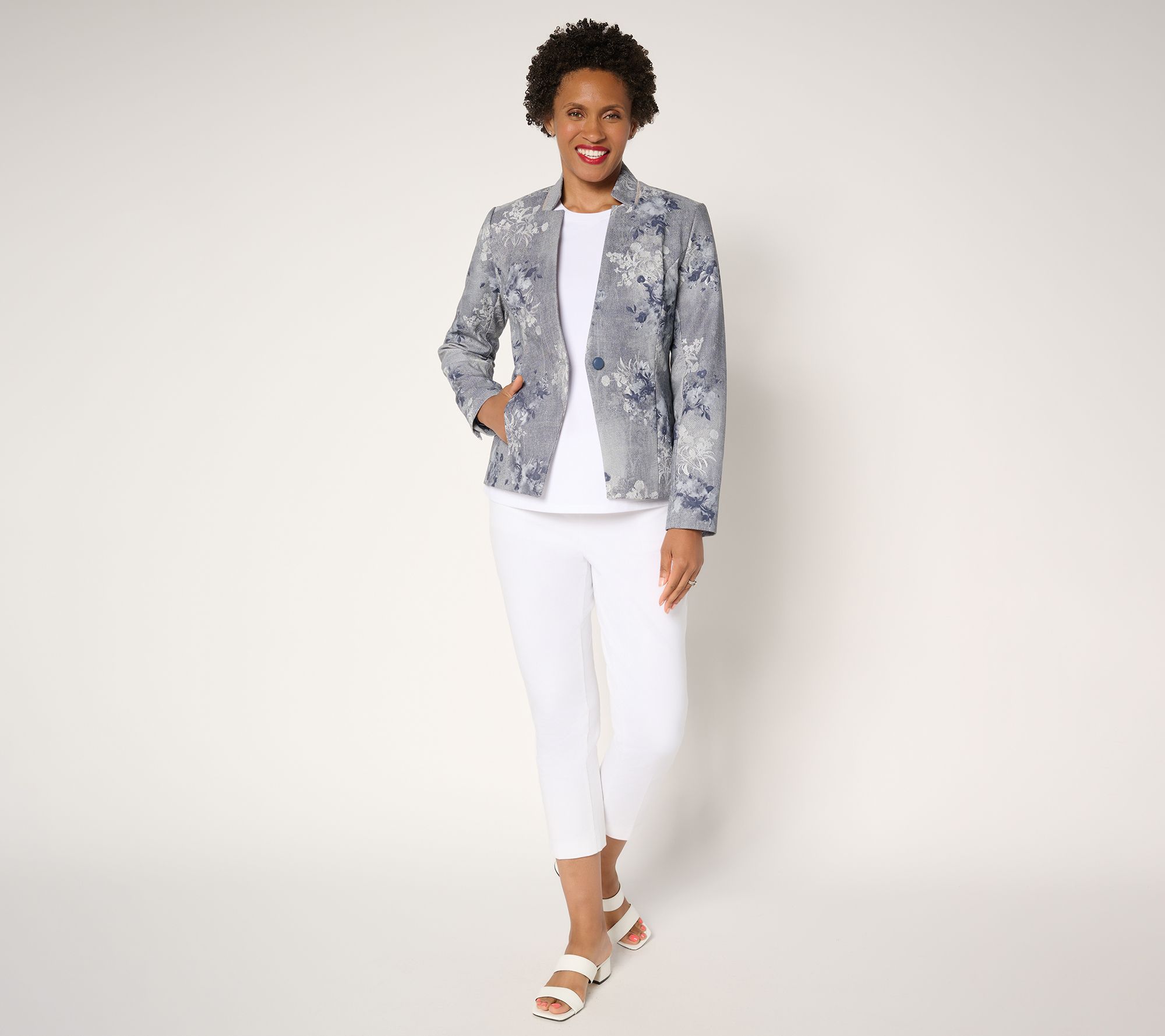 Whether you're headed to a gallery opening or brunch downtown, this faux-leather blazer adds a bold twist to any outfit. Its striking print and figure-flattering fit make it a go-to layer over dresses, trousers, or favorite jeans, while the notched lapel lends polished appeal from evening outings to daytime events. And -- surprise! -- it's machine washable. From Women with Control®.