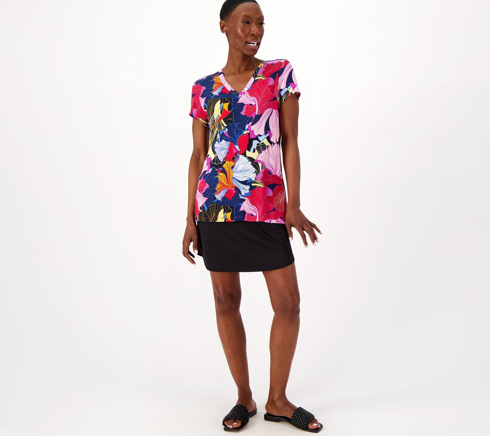 When your OOTD needs a little leveling up, but you don't want to feel buttoned up, reach for this bold print tee. Soft modal flatters every curve and feels comfortable on the skin while the lively print is packed with colorful punch. From Women with Control®.
