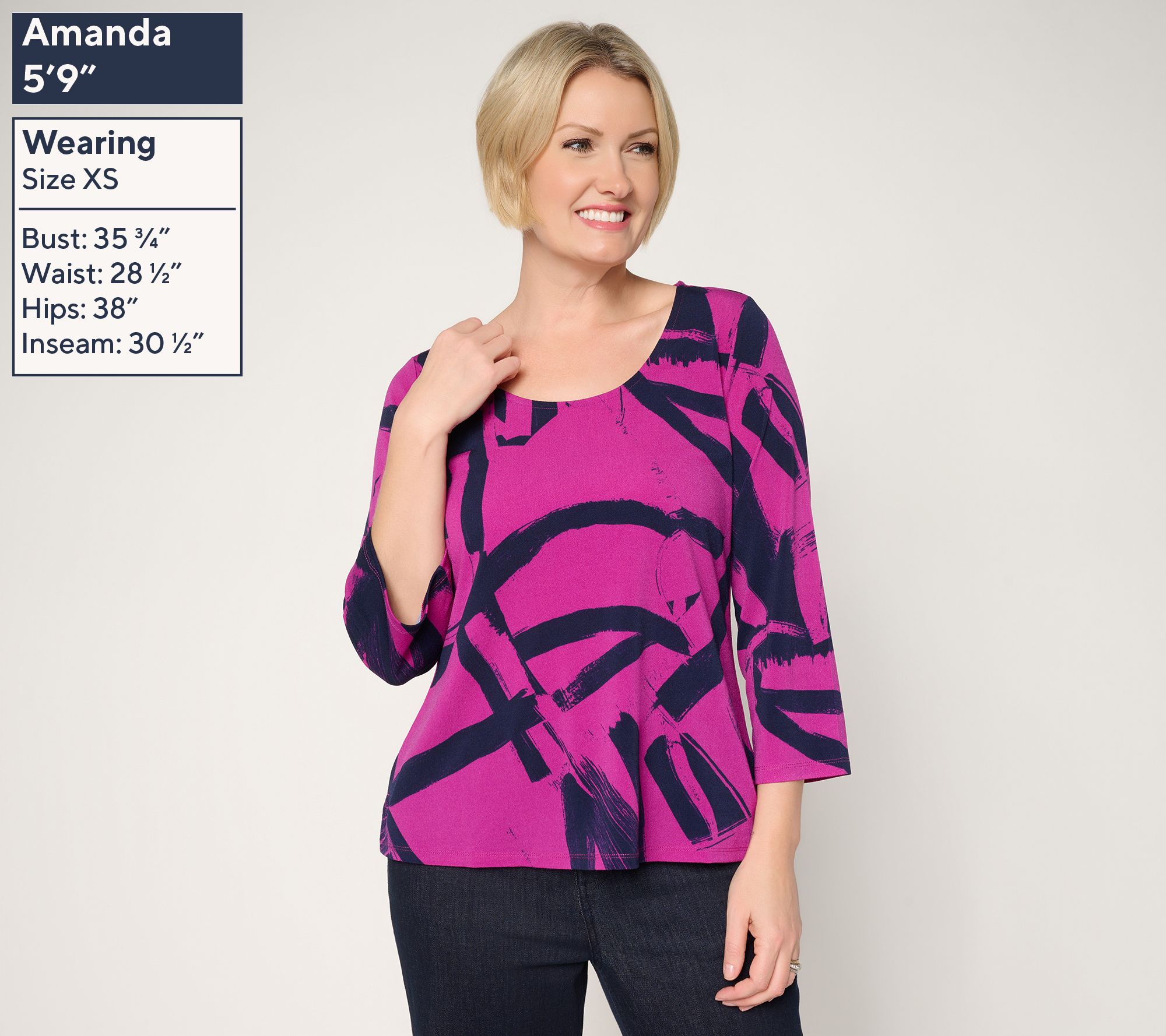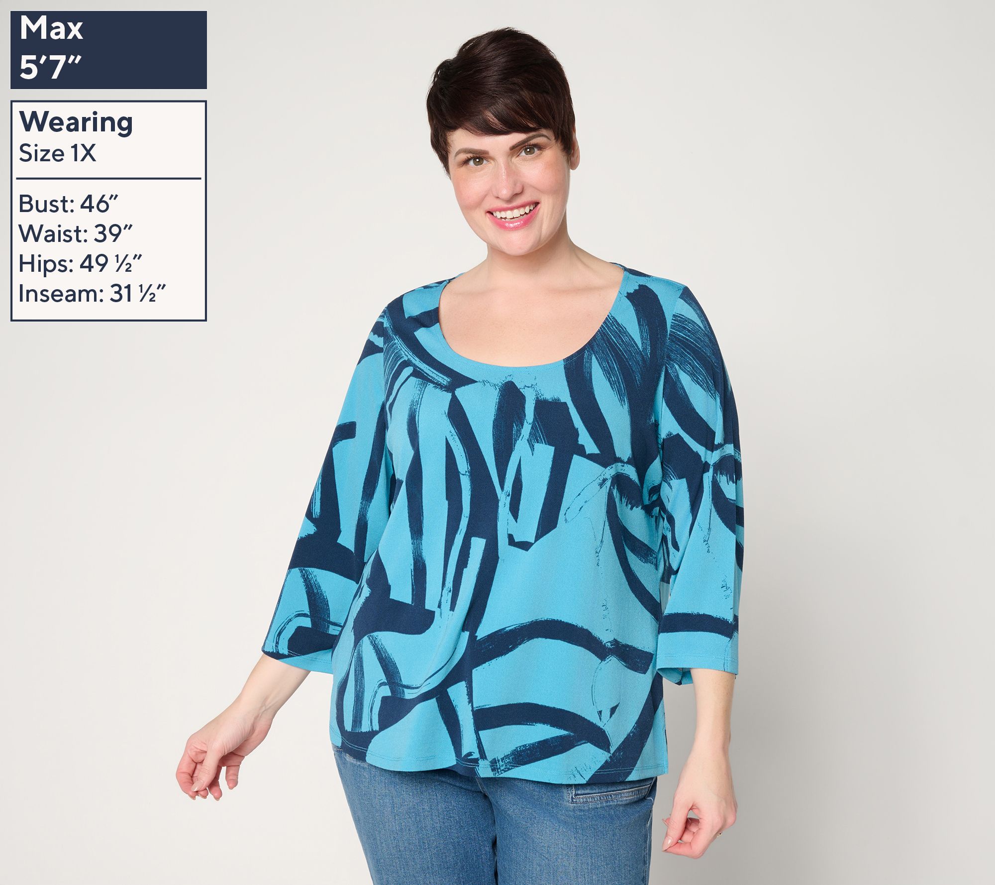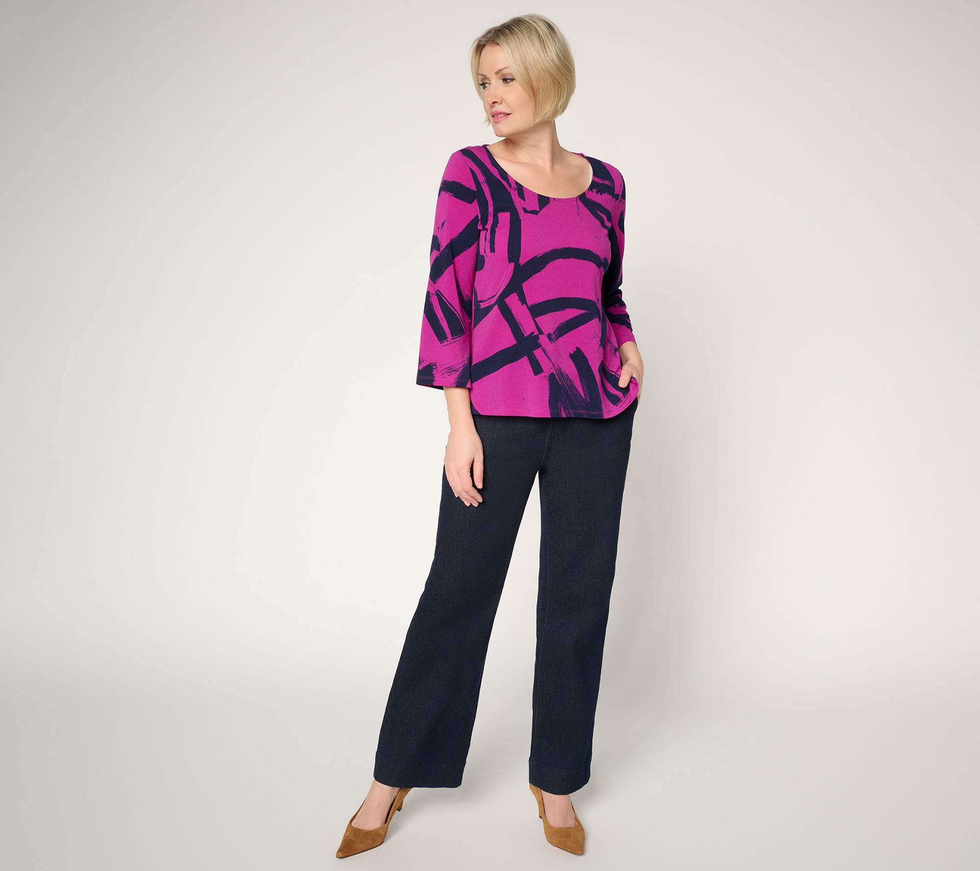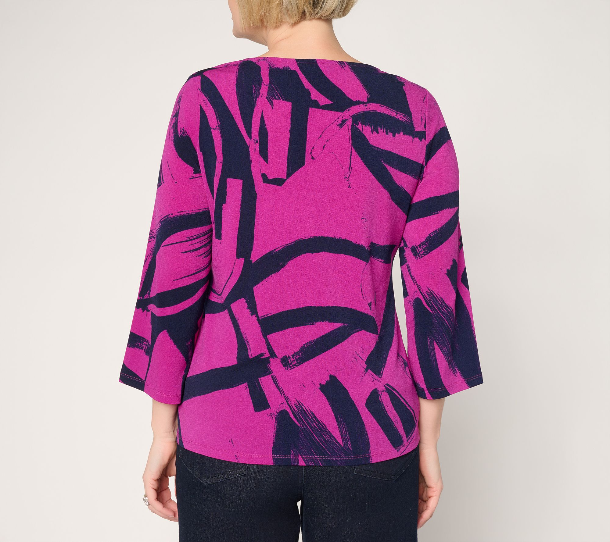 Slip into all-day comfort and standout style with this printed moss crepe top, designed with bell sleeves and a scoop neckline for a breezy, modern look. Whether you're pairing it with dressy pants for a lunch date or keeping it casual with jeans, the relaxed fit and fun print help you move through your day with confidence. From Women with Control®.