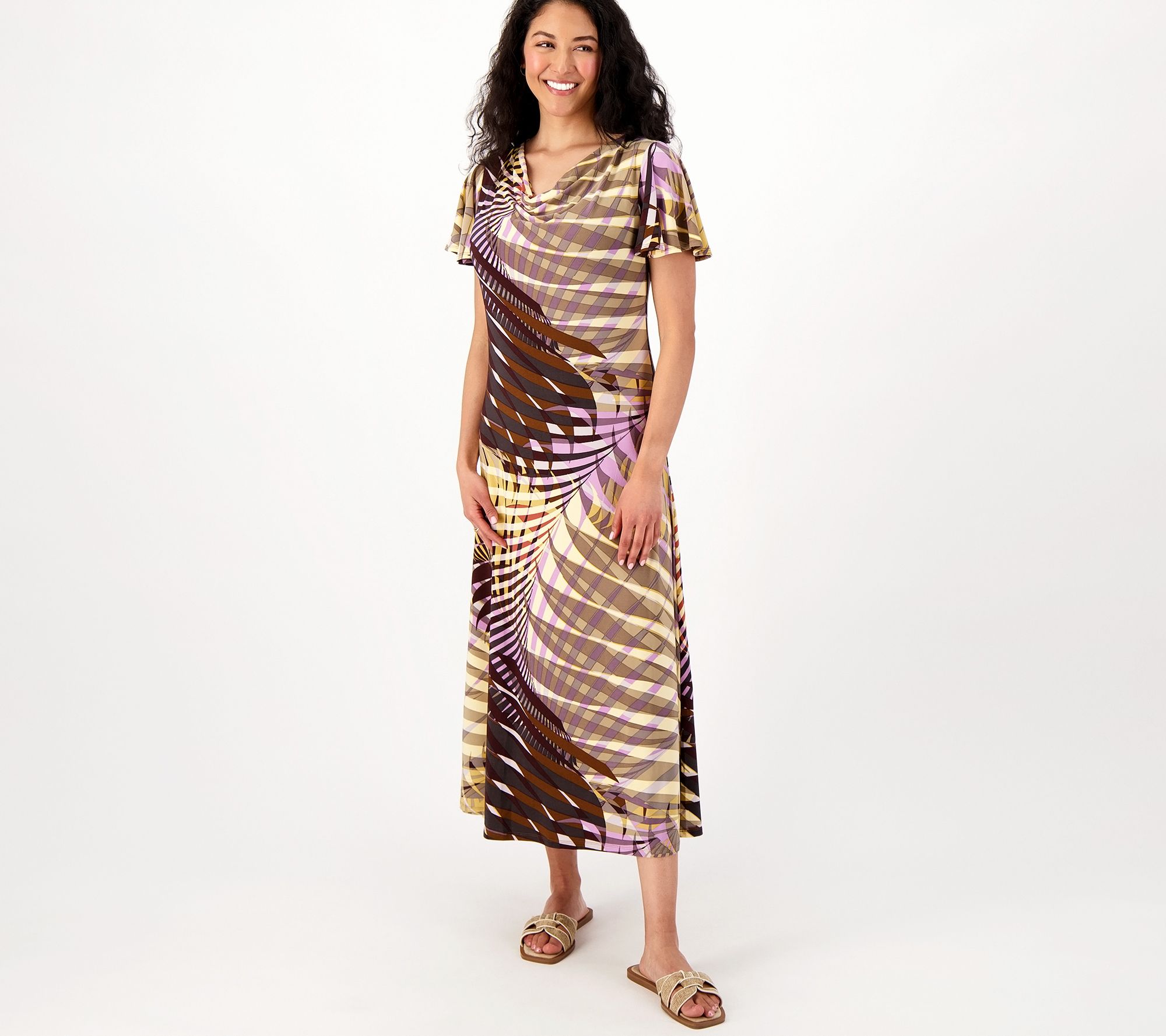 From the draped neckline to the flutter sleeves, this lovely dress is all about the details. From Women with Control®.