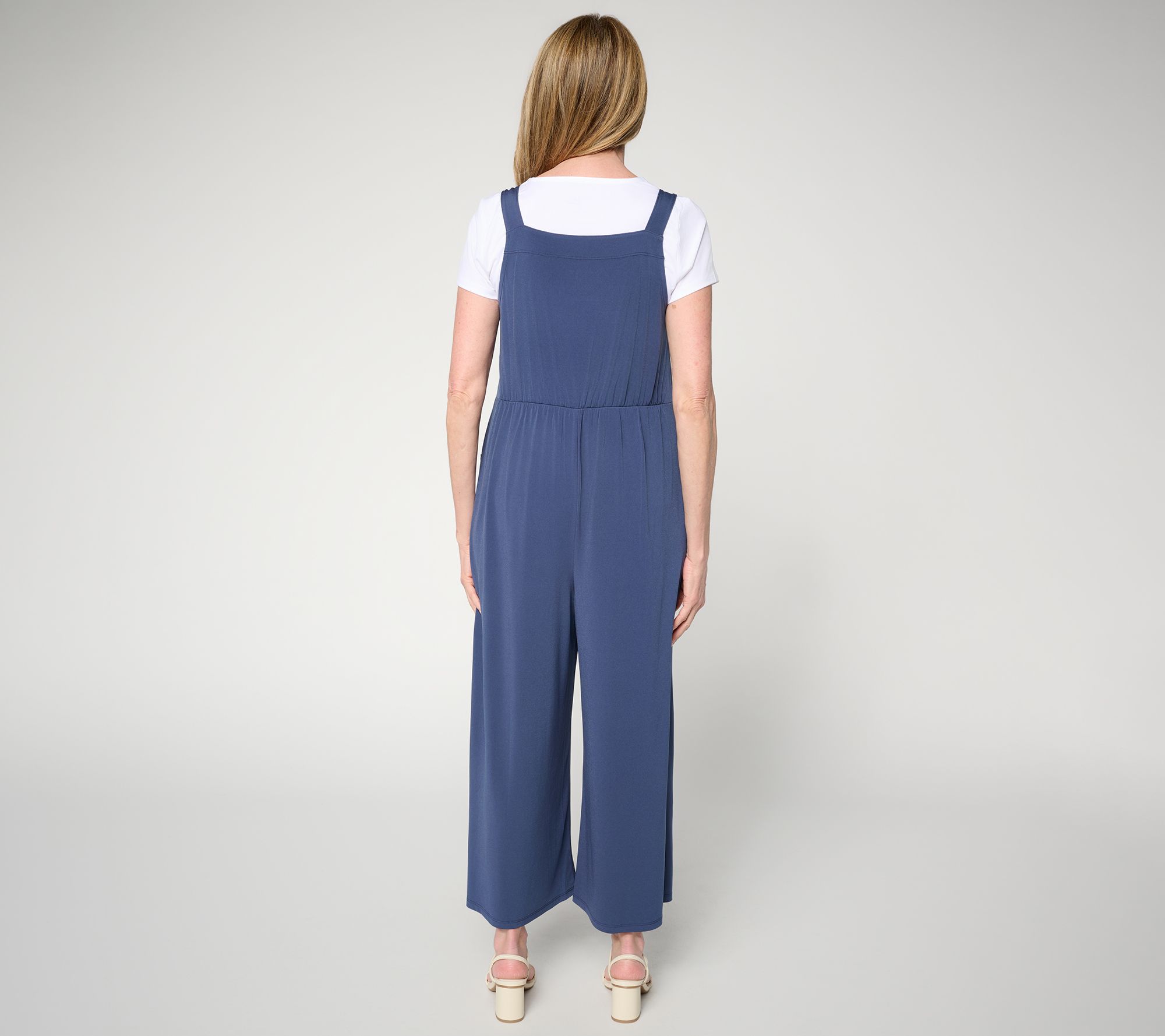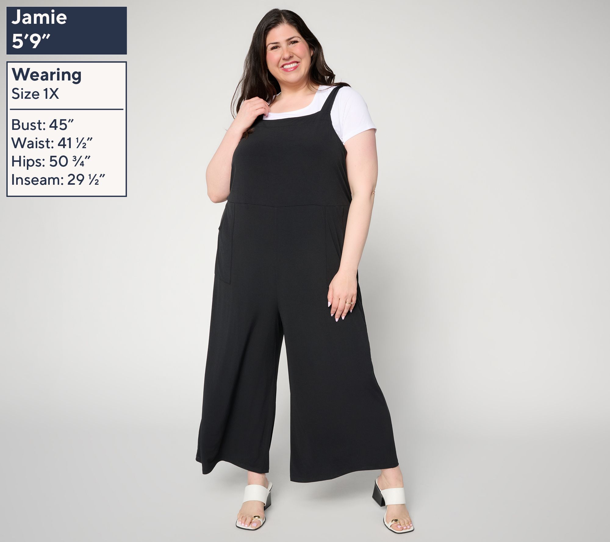 Attitudes by Renee Regular Como Jersey Overall Set. Knit. Semi-fitted- Follows the lines of the body with added wearing ease. Content: 94% Polyester, 6% Spandex. Inseam: 23". Care: MWCDC/ONCBWN/TDL/WADWLC/LIIN . COO: Import. Features: Overall jumpsuit + short sleeve t shirt set. Round neckline & wide straight fit silhouette. Soft and comfortable fabric for easy all-day wear. Side pockets for added functionality. Tee body length :Missy -24"-26 ". Plus-27"-29"