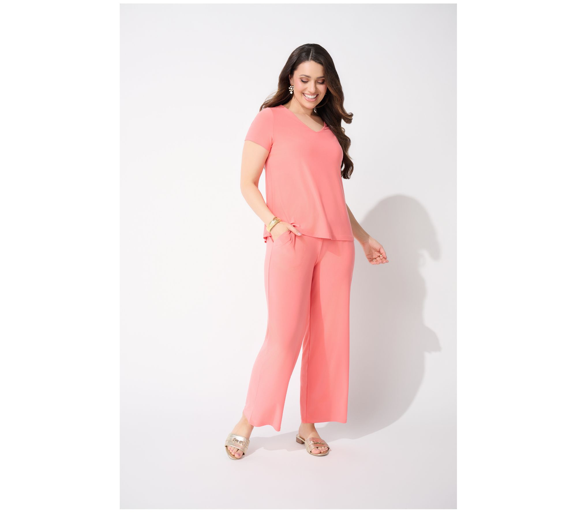 Love an easy outfit that can go dressy or casual? This coordinated Como Jersey top-and-pants set makes getting ready -- for work, weekend, or worship -- a total breeze. Just add accessories (and those really cute shoes you just scored)! From Women with Control®.