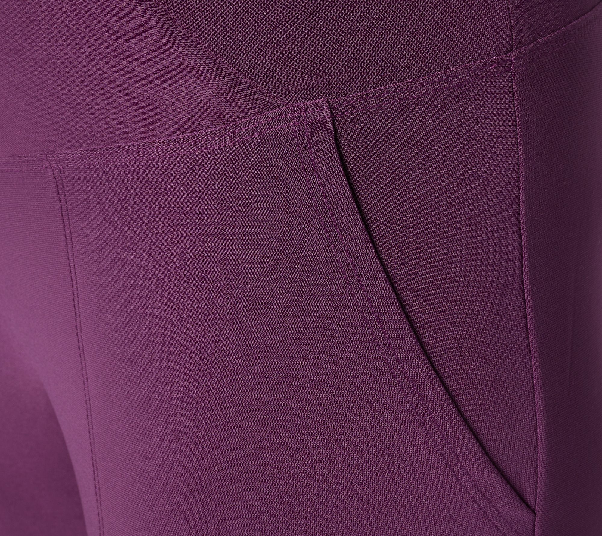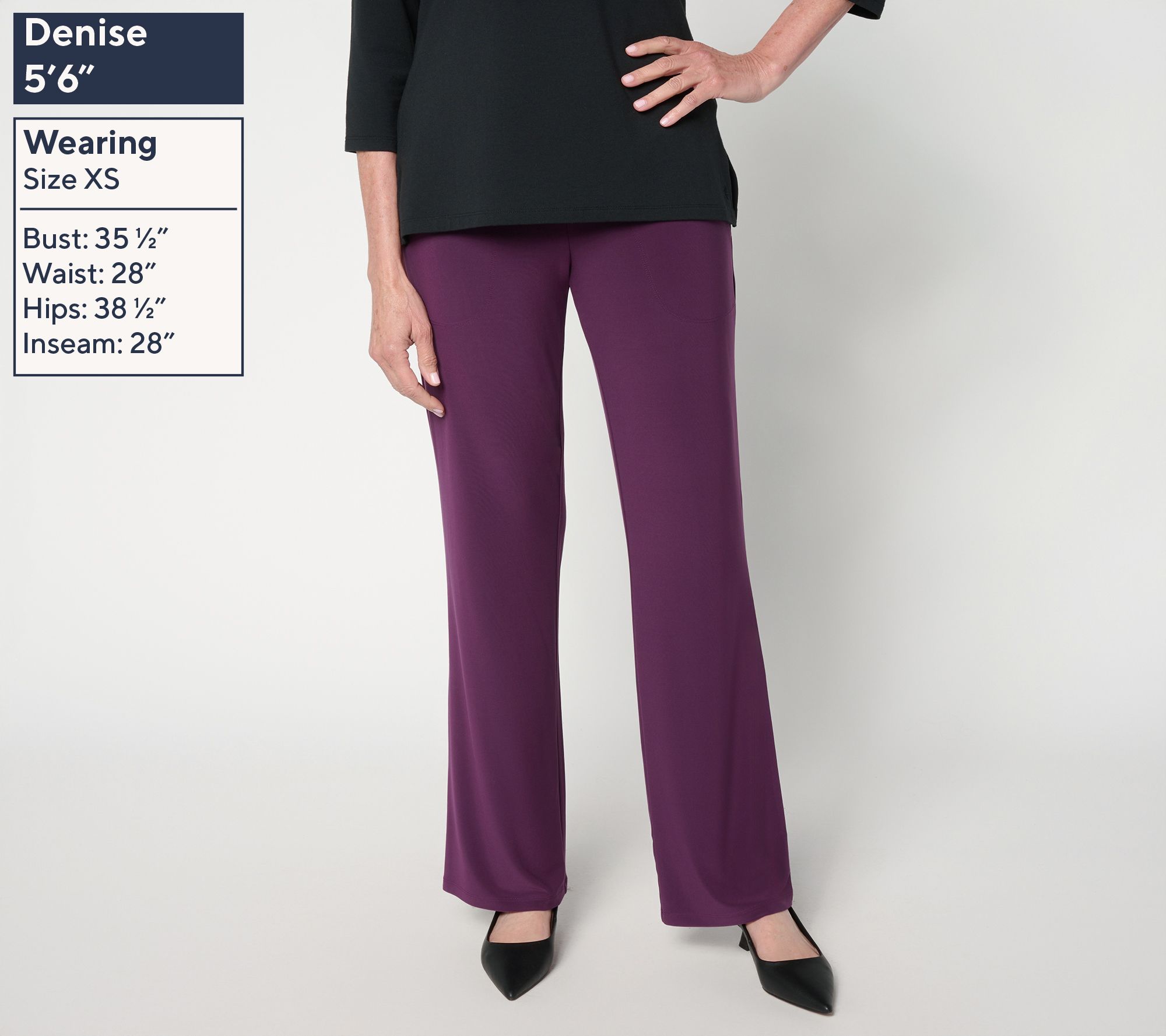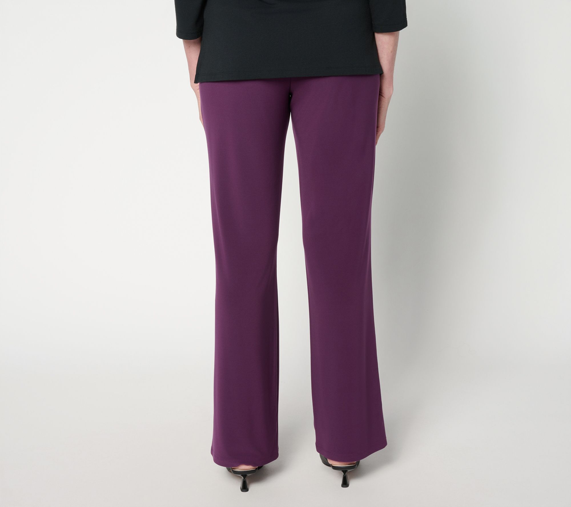 Say hello to your new statement pants -- perfect for everything from busy weekdays to weekend adventures. The crossover Tummy Control waistband lined with Blu-Tec Control SystemTM adds impeccable shaping at the waist, while the baby bell leg gives a playful update to your usual silhouette. With a body-skimming cut through the hips and thighs, these La Roma jersey pants are all about versatile, flattering comfort you can count on. From Women with Control®.