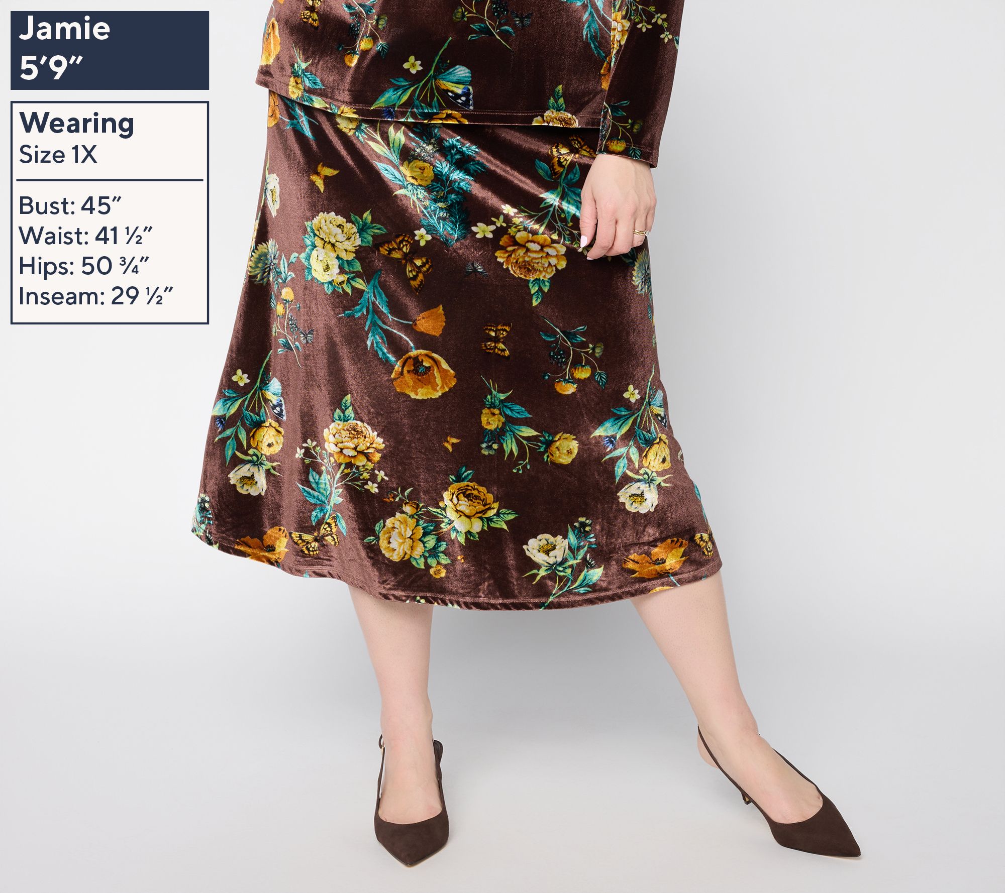From weekday plans to festive nights out, this velvet midi skirt adds a stylish edge with its sleek, pulled-together silhouette. The softly textured fabric and elastic waistband make it an effortless choice for pulled-together looks that move comfortably from desk to dinner. From Women with Control®.