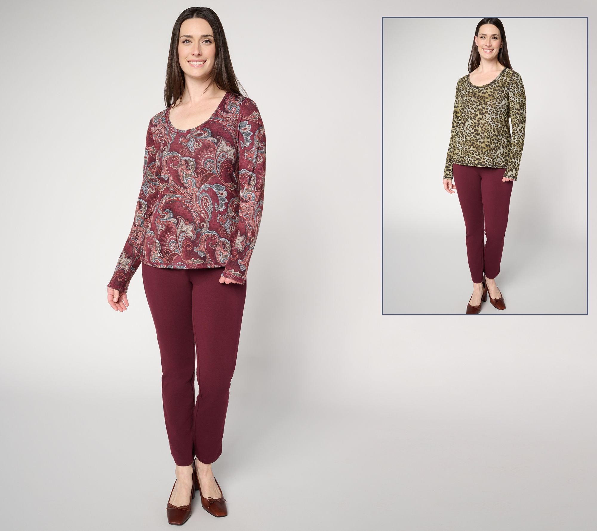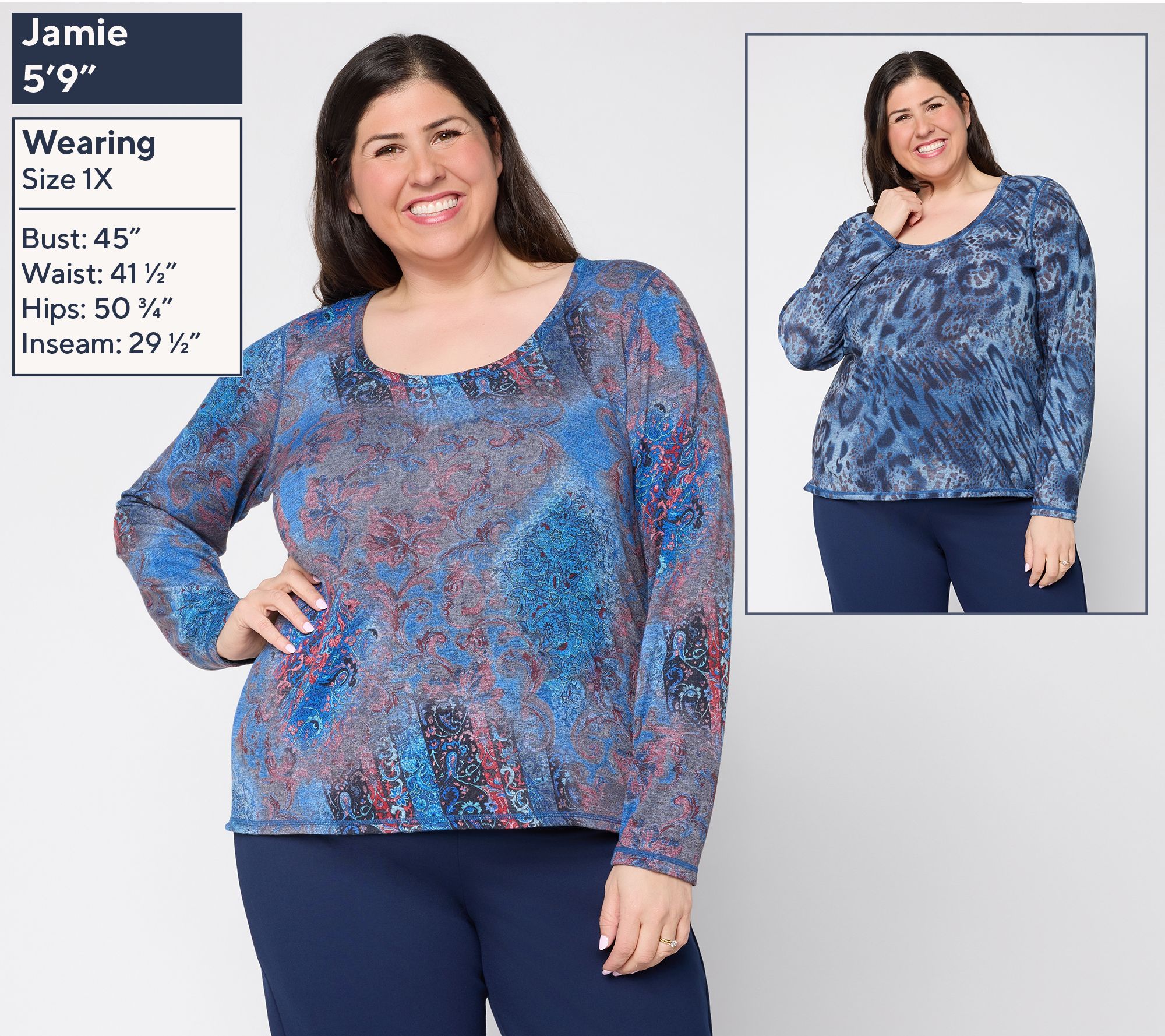 Get two looks in one! Set a new tone for your casual 'fits with this long-sleeve knit top. Ready to be in constant rotation, the reversible print lets you refresh your style in seconds. The soft stretch fabrication offers lasting comfort from morning to evening. From Women with Control®.