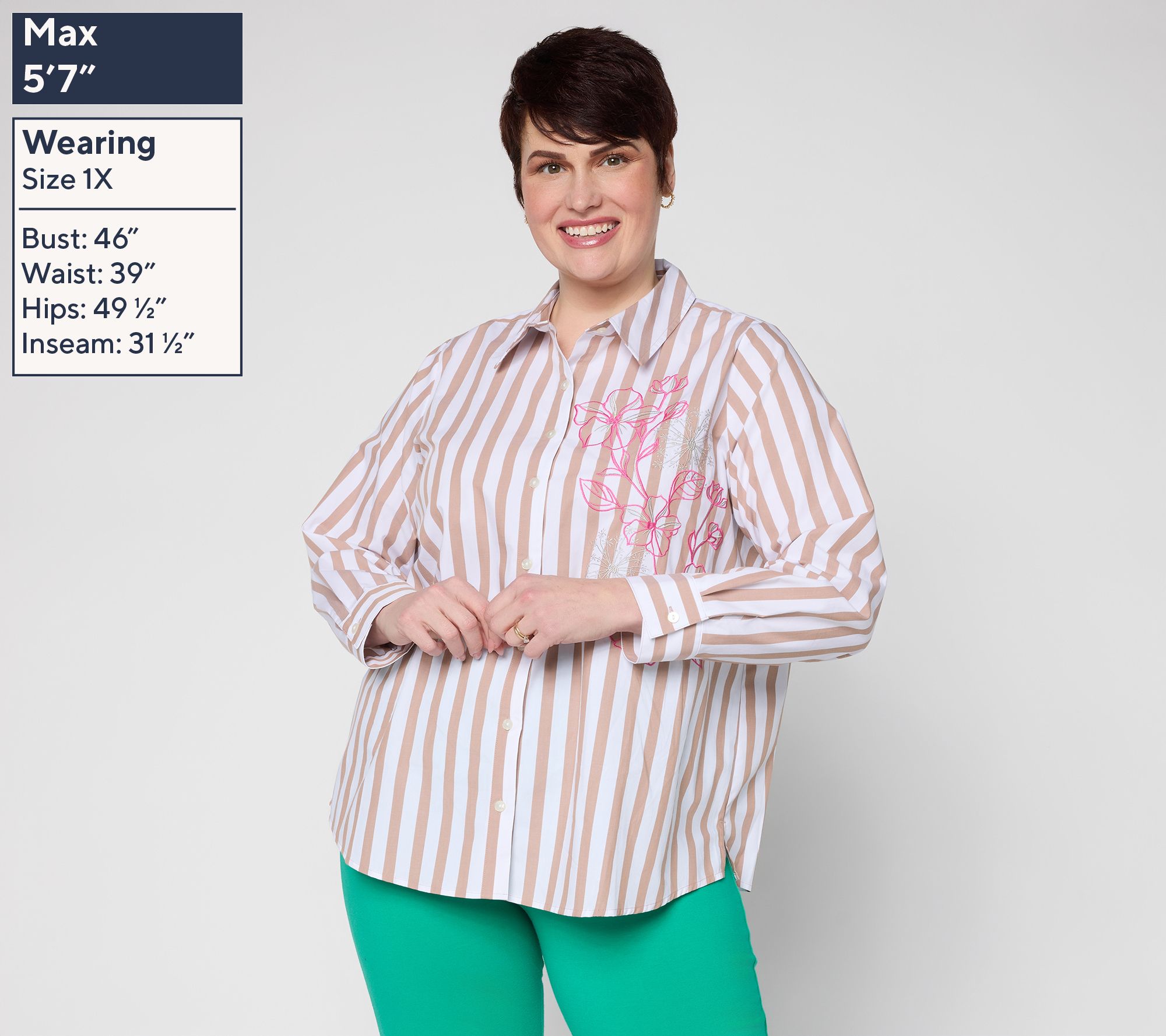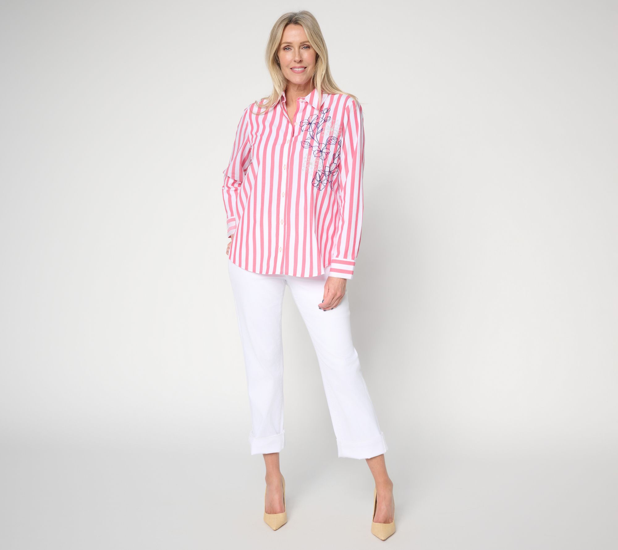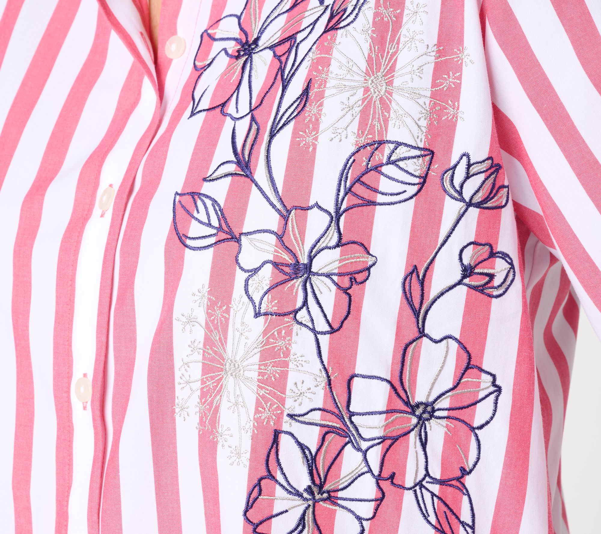 Show your stripes! Whether you're meeting friends for coffee or heading to the office, this pretty embroidered top adds personality to everyday outfits. The never-tight silhouette, crafted with a hint of stretch, flatters while helping to keep you comfortable from morning to night. From Women with Control®.