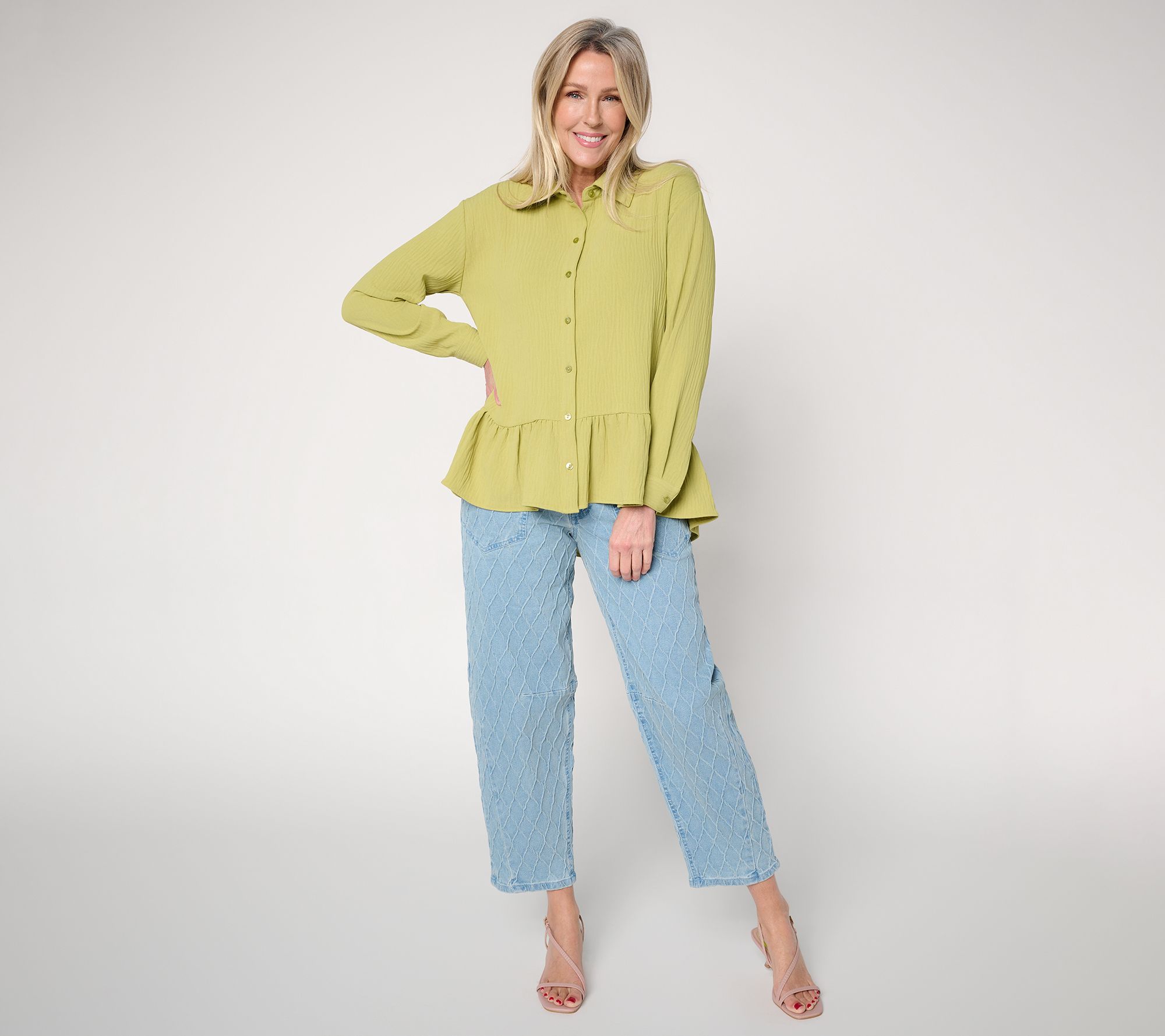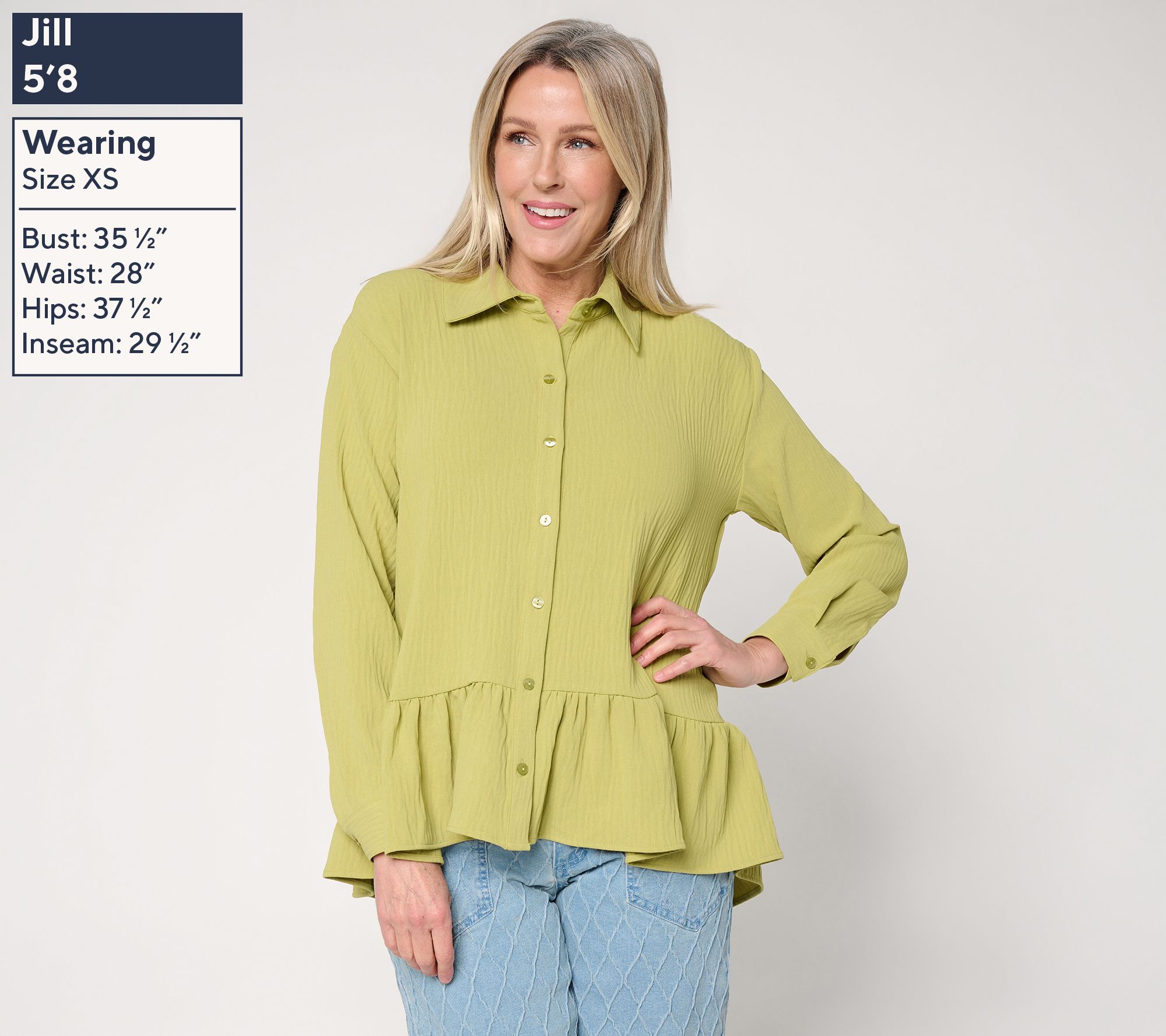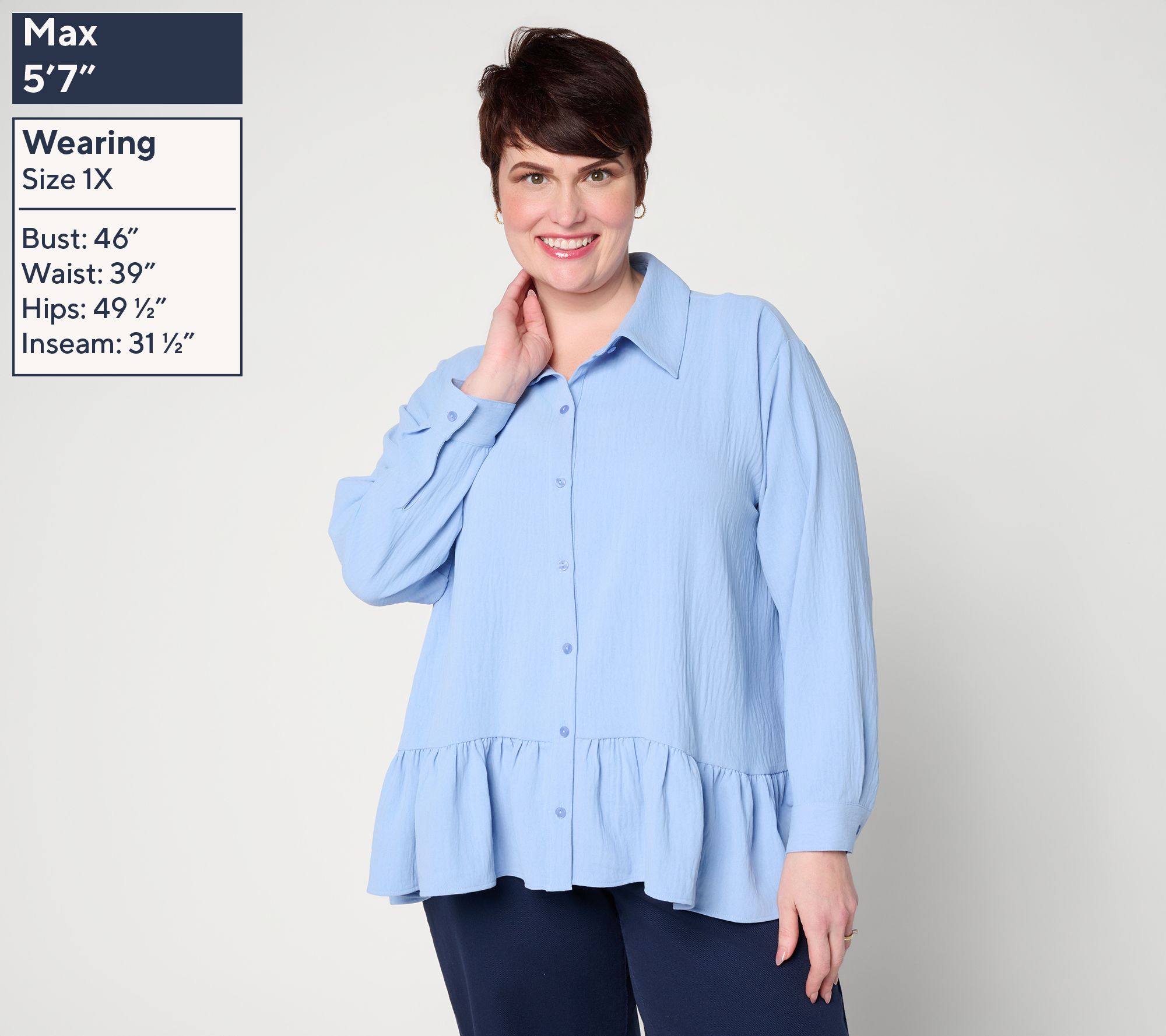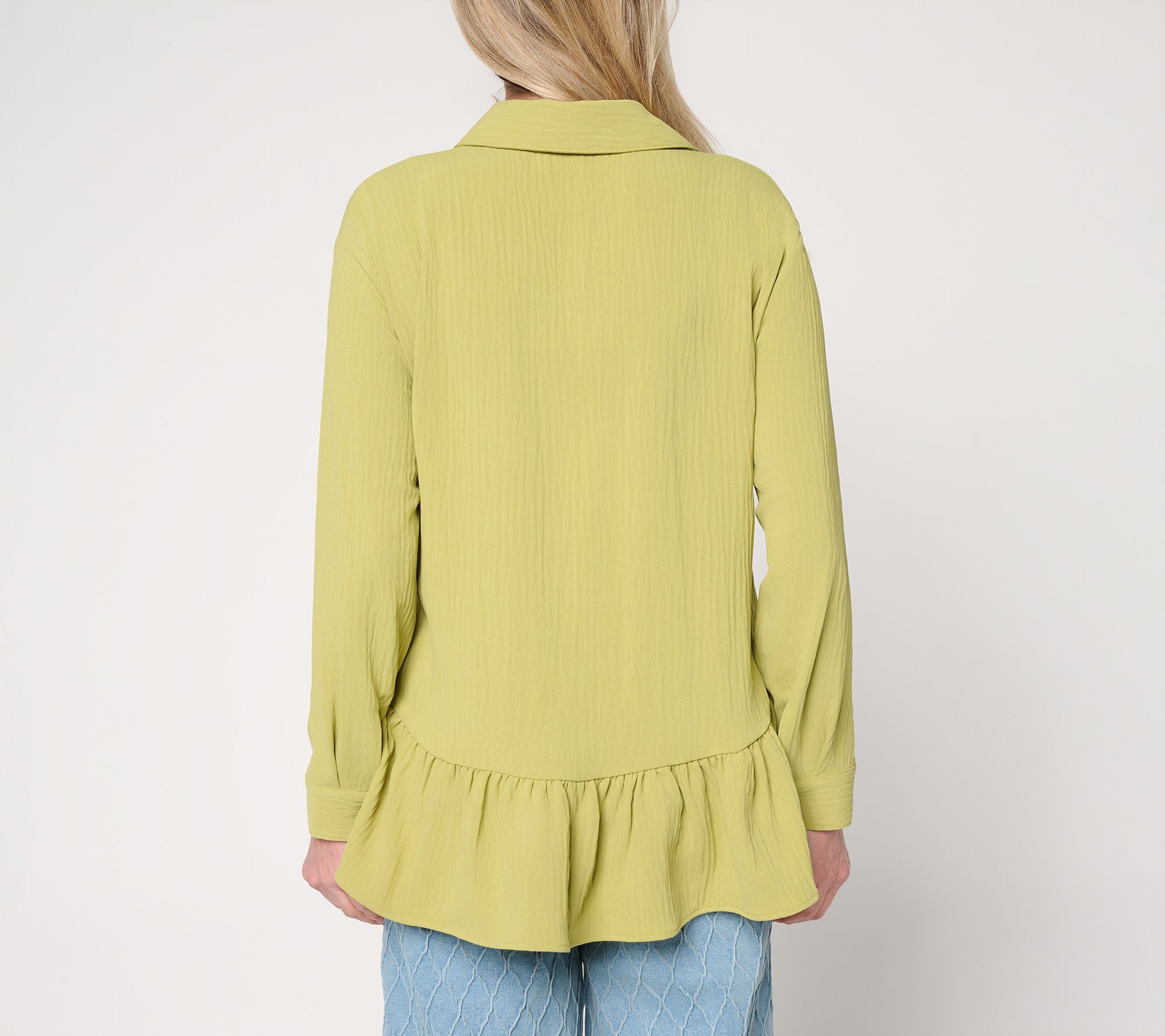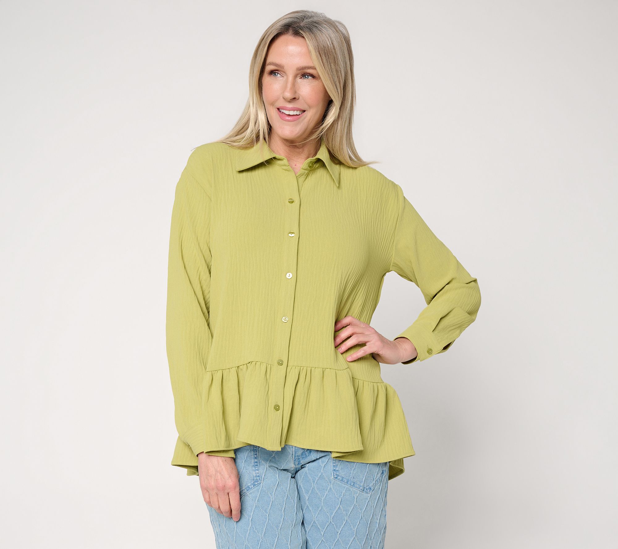 From a day at the office to brunch with friends, this textured woven ruffle top brings effortless charm to your wardrobe. Featuring a relaxed cut and playful ruffled hem, it's a flattering choice that stands out with jeans, skirts, or trousers. From Women with Control®.