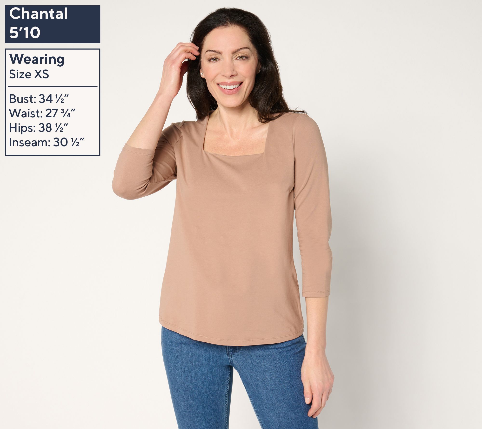 Show off that new necklace -- and your love of fresh fashion -- in this square-neck top. Washed cotton jersey works for both work and weekend looks throughout the seasons. From Women with Control®.