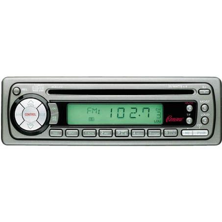 The player also offers seek tuning; electronic balance and fader controls for four-way balancing capability; 8X oversampling digital filter; electronic mode select; quartz clock; mute; and a flashing, theft deterrent LED. More features: preset scan; electronic up/down volume control; electronic bass and treble controls; track up/down, scan, random, and repeat CD functions; two-channel RCA low level outputs for use with external equalizer or amplifier; loudness control; mono/stereo and local/distance switches; and ISO-DIN mounting. Includes a carrying case for the detachable front panel.