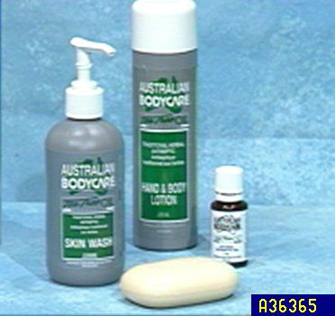 This kit includes Bodycare Tea Tree Oil Hand and Body Lotion 7.6 oz, Skin Wash 7.6 oz, Tea Tree Oil .54 oz, & Gentle Family Soap 3.5 oz. This natural, anti-septic essential oil, w/it's distictive & natural scent, is found only in the leaf of a tree native to Australia. The Melaleuca alterni-folia is a particularly rare species indigenous to one small part of New South Wales. Australian Bodycare prides itself on the absolute purity, quality & effectiveness of it's Tea Tree Oil & have developed a range of products for everyday, therapeutic use. Australia.
